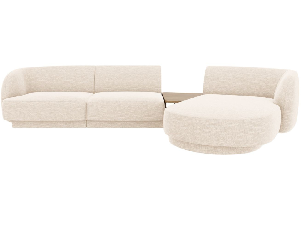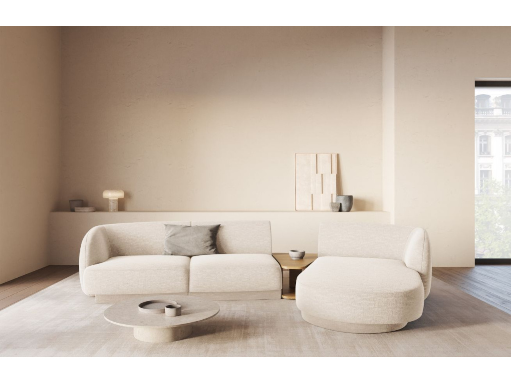 Rohovou pohovku Miley od značky Micadoni si zamilujete! Její elegantně obloukovité opěradlo vás doslova zve k odpočinku, zatímco jemně zapuštěná základna dodává celému kusu vzdušnost a lehkost. Žinylková potahová látka je velmi příjemná až téměř hedvábná na dotek. Probarvené nitě vytvářejí poutavou 3D strukturu se stínovým a lesklým efektem. Tkanina je velmi odolná proti oděru, díky tomu je pohovka vhodná i do komerčních prostor. Vysoká kvalita a neobyčejný vzhled látky dodávají nábytku sofistikovaný dojem, který umožňuje jeho široké využití v moderním nebo skandinávském stylu. Integrovaný konferenční stolek je nejen designovým prvkem, ale také praktickým místem pro odložení věcí, které chcete mít po ruce, nebo pro umístění dekorací. K pohovce je možné přikoupit další produkty z kolekce Miley. Díky tomu si můžete vytvořit sedací soupravu, kterou je vhodné kombinovat se skleněným nebo dřevěným konferenčním stolkem.