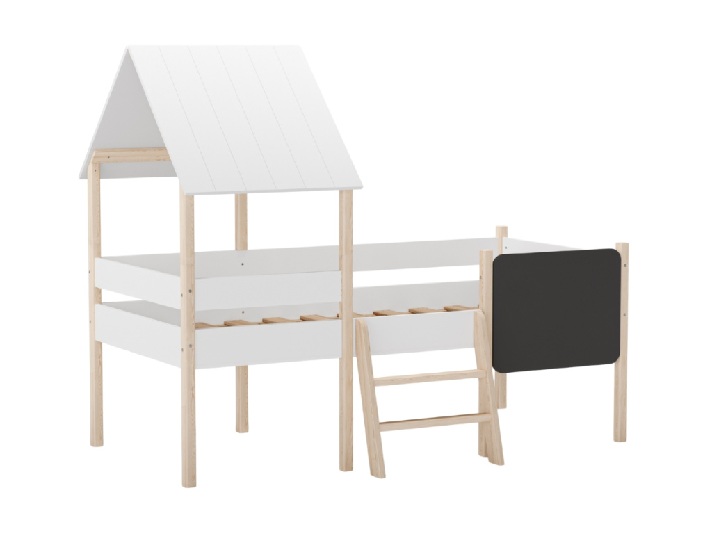 Dětská postel Mint promění dětský pokoj v malé království plné fantazie a nápadů. Její součástí je černá tabule, na kterou si děti mohou křídami kreslit nebo psát – přesně jako ve škole. Kombinace lakovaného MDF a borovicového dřeva v přírodním odstínu a bílém laku dodává posteli svěží a nadčasový vzhled, který skvěle zapadne do každého pokojíčku. Díky zvýšené konstrukci zůstává pod postelí volný prostor, ideální na ukládání hraček v koších nebo na dobrodružné hraní na schovávanou. Postel je dostupná ve dvou barevných variantách.