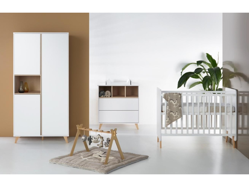Nedílnou součástí každého pokoje pro miminko je postýlka. Značka Quax přichází s řadou Loft, která vás zaujme nejen svým minimalistickým designem, ale také praktičností a funkčností. Konstrukce je kompletně vyrobená z laminátu v něžné bílé barvě, která v kombinaci s masivní bukovou podnoží vytváří jemný a vzdušný kontrast. Postýlku lze nastavit ve třech úrovních výšky, díky čemuž postýlku přizpůsobíte přesně dle vašich potřeb a potřeb vašeho miminka. Doporučujeme kombinaci více prvků z řady Loft, abyste vytvořili dokonalý kontrast a souhru v interiéru. Postýlka Loft se skvěle hodí do minimalistických či skandinávských interiérů.