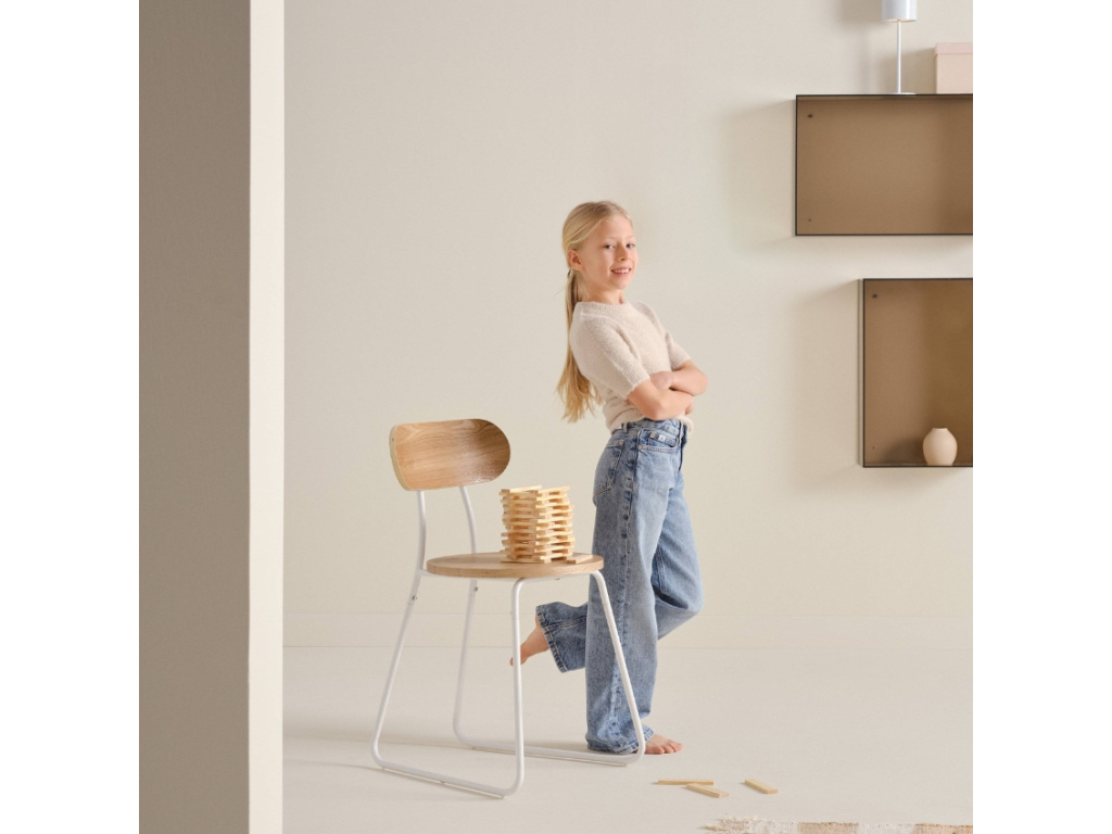 Dětská židle SCHOOL je ideálním parťákem pro malé snílky, tvořitele i školáky. Nabízí pohodlné a stylové zázemí pro každodenní hraní, kreslení i psaní úkolů. Kombinuje hravý minimalismus s důrazem na pohodlí a funkčnost – má elegantně zaoblený sedák a opěrku z MDF s přírodní jasanovou dýhou, které působí teple a přirozeně. Pevná kovová konstrukce s matnou povrchovou úpravou zajistí stabilitu i během těch nejrušnějších chvilek. Snadno ji sladíte s ostatním nábytkem a její nadčasový vzhled bude děti provázet klidně i několik let. Stylová a promyšlená do detailu – židle, kterou si zamilují děti i rodiče.