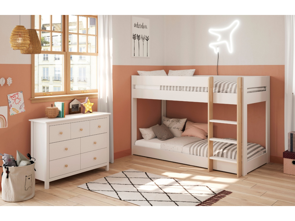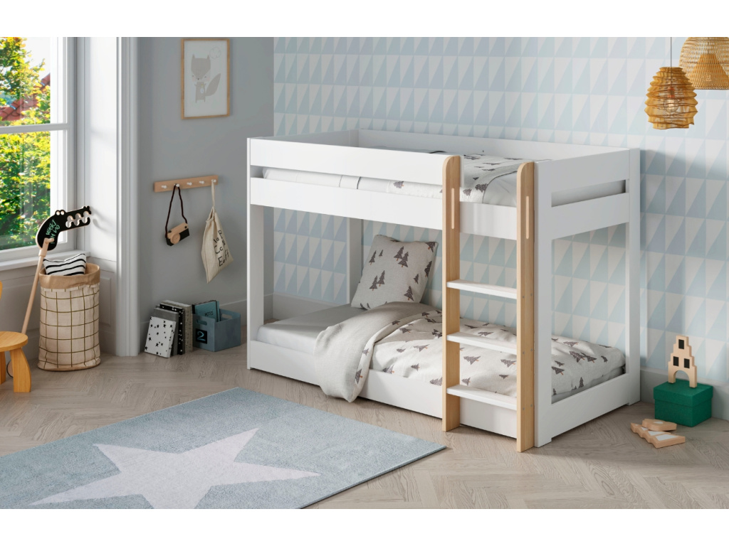 Dětská patrová postel Angel od značky Marckeric v elegantně bílém laku má bezpečné provedení v konceptu Montessori, díky kterému je velmi nízká a dobře zaopatřená tak, aby z ní dítě nevypadlo. Kombinace lakovaného borovicového dřeva a MDF tvoří dohromady výjimečný design, který se zaručuje pohodlným, klidným spánkem a skvěle vypadajícím interiérem. Dostupná je ve dvou barevných variantách.