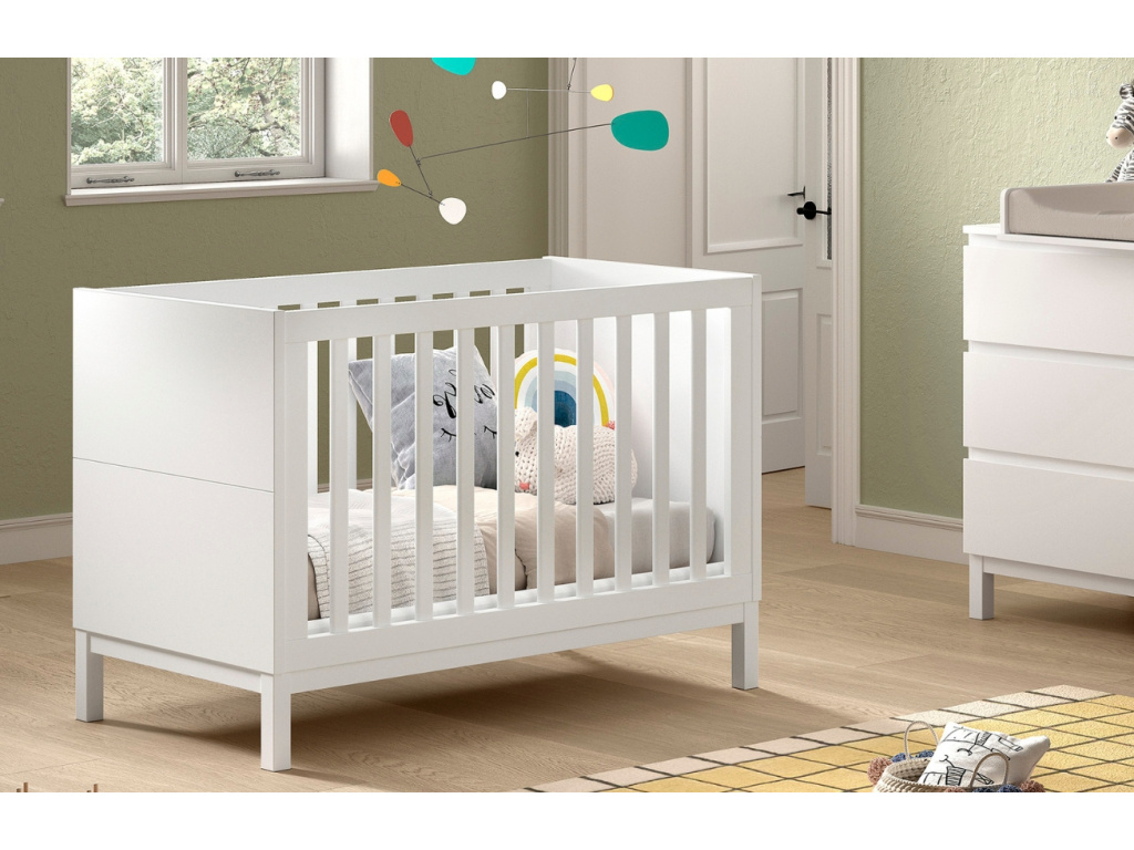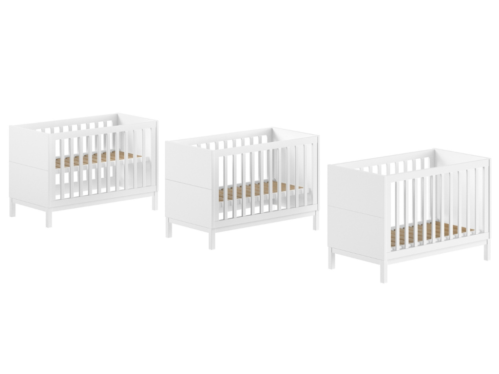 Dětská postýlka Eva v bílé barvě je navržena s důrazem na praktičnost, bezpečí a čistou eleganci. Korpus je vyroben z masivní borovice a MDF. Díky výškově nastavitelnému roštu do 3 výšek roste spolu s vaším dítětem – od miminka až po batole. Je součástí širší kolekce Eva, se kterou hravě vybavíte celý dětský pokoj v jednotném stylu – ideální volba pro rodiče, kteří hledají chytré a dlouhodobé řešení do dětského pokoje.