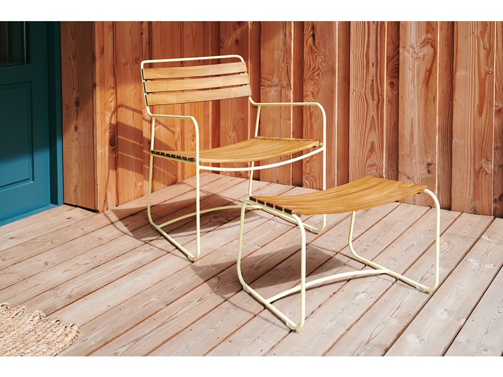 Podnožka Fermob Surprising zaujme již na první pohled. Kovová konstrukce spojená s tenkými lamelami dodává podnožce jednoduchý a elegantní design. Tento venkovní nábytek se hodí k letnímu grilování či posezení s přáteli. Podnožka je odolná vůči povětrnostním podmínkám, ale i přesto ji doporučujeme přikrývat.