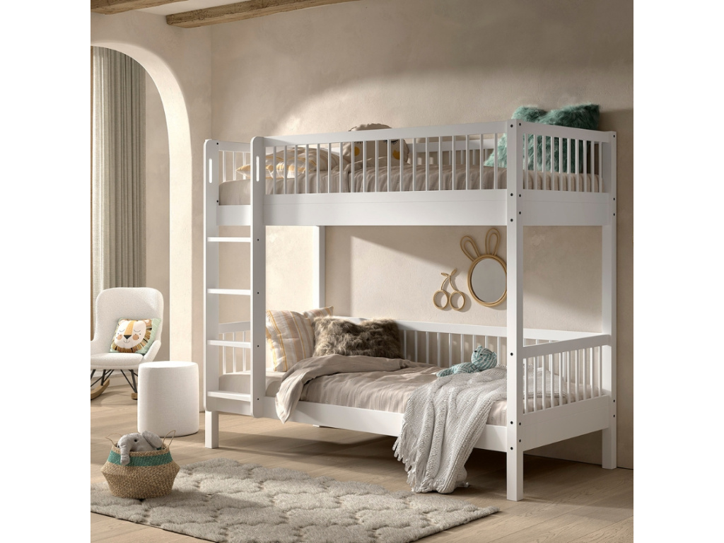 Přírodní postel Vipack Forrest je vyrobená z masivního bukového dřeva. Patrová postel se dvěma lůžky je ideální řešení do dětského pokoje, když potřebujete uspořit co nejvíce místa. Žebřík s širokými schůdky lze namontovat na pravou i levou stranu. Místo pod postelí lze vyplnit zásuvkami, díky nimž získáte praktický úložný prostor navíc.