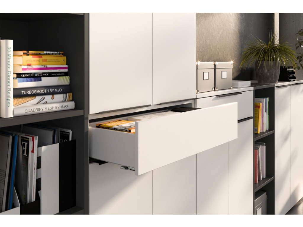 Kancelářská skříň Mailand od značky Germania je dokonalým spojením funkčnosti, estetiky a precizního zpracování. Elegantní linie, promyšlené detaily a kvalitní materiály z ní dělají kus nábytku, který nejen uspořádá váš pracovní prostor, ale i pozvedne jeho styl. Povrchová úprava z melaminové pryskyřice chrání korpus před poškrábáním a vlhkostí, zatímco kvalitní ABS hrany zaručují, že si skříň zachová svůj vzhled po dlouhá léta. Dvířka s tlumeným dovíráním se zavírají tiše a hladce, takže i běžné používání působí prémiově. Za minimalistickým designem se skrývá promyšleně uspořádaný úložný prostor s výškově nastavitelnými policemi, který nabízí dostatek místa pro šanony, dokumenty i kancelářské doplňky. Praktická zásuvka vybavená funkcí push-to-open pak umožňuje mít drobnosti vždy po ruce a zároveň elegantně skryté. Díky dvěma elegantním barevným variantám si můžete zvolit provedení, které nejlépe vystihne atmosféru vašeho pracovního prostoru. Mailand tak spojuje praktičnost s elegancí a vytváří prostředí, ve kterém se snadno pracuje i dýchá.