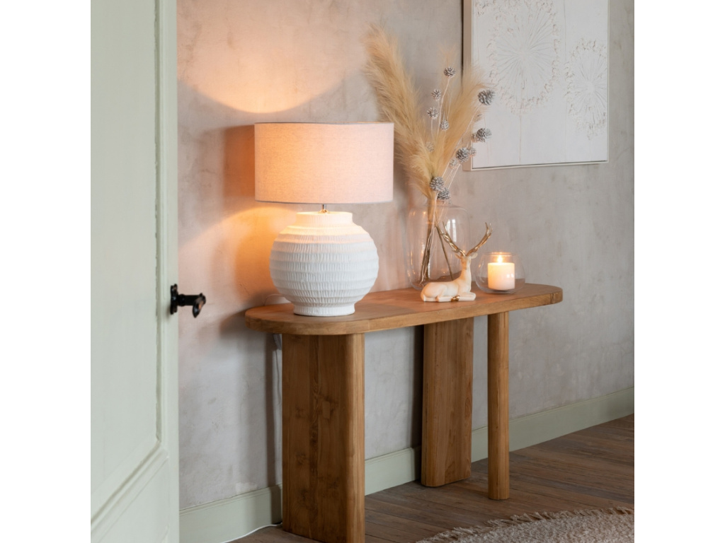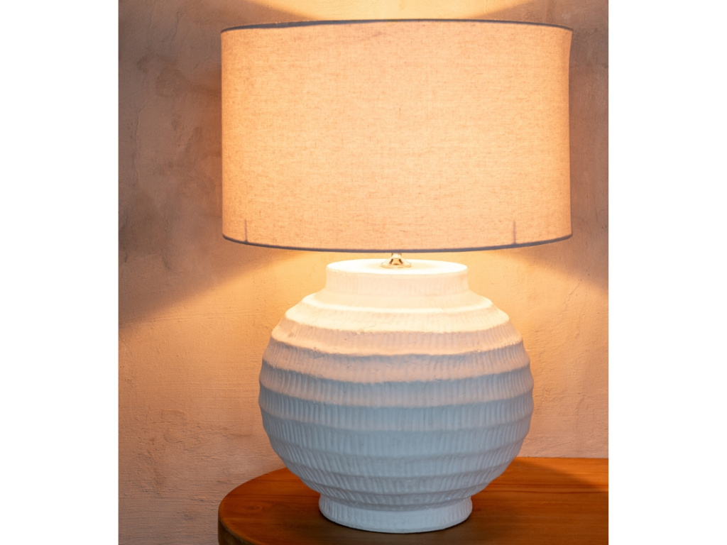 Dodejte svému domovu hřejivý dotek elegance se stolní lampou Terracotta. Její keramická podstava s jemnou strukturou a matně bílým odstínem působí vkusně a nadčasově. Stínidlo rozptyluje příjemné, teplé světlo, které navodí útulnou atmosféru v obýváku, ložnici i chodbě. Lampa skvěle ladí s dřevěným nábytkem i moderním minimalistickým interiérem. Nadchne milovníky přírodních materiálů a čistého designu.