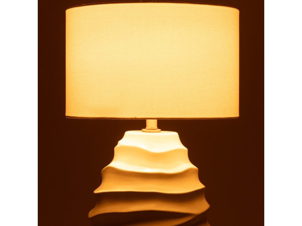 Stolní lampa Wave je dokonalým spojením elegance a originality, které okamžitě oživí každý interiér. Její keramická podstava s jemným vlnitým reliéfem působí jako umělecké dílo, zatímco stínidlo zajišťuje měkké a příjemné světlo. Díky neutrální bílé barvě se snadno kombinuje s různými styly – od moderního minimalismu po útulný skandinávský design. Lampa je ideální na noční stolek, do obývacího pokoje nebo pracovny, kde vytvoří atmosféru klidu a pohody. Zapnutá i vypnutá zaujme svým jedinečným tvarem a decentním vkusem. Pořiďte si tento kousek a proměňte svůj domov v harmonické a stylové místo.