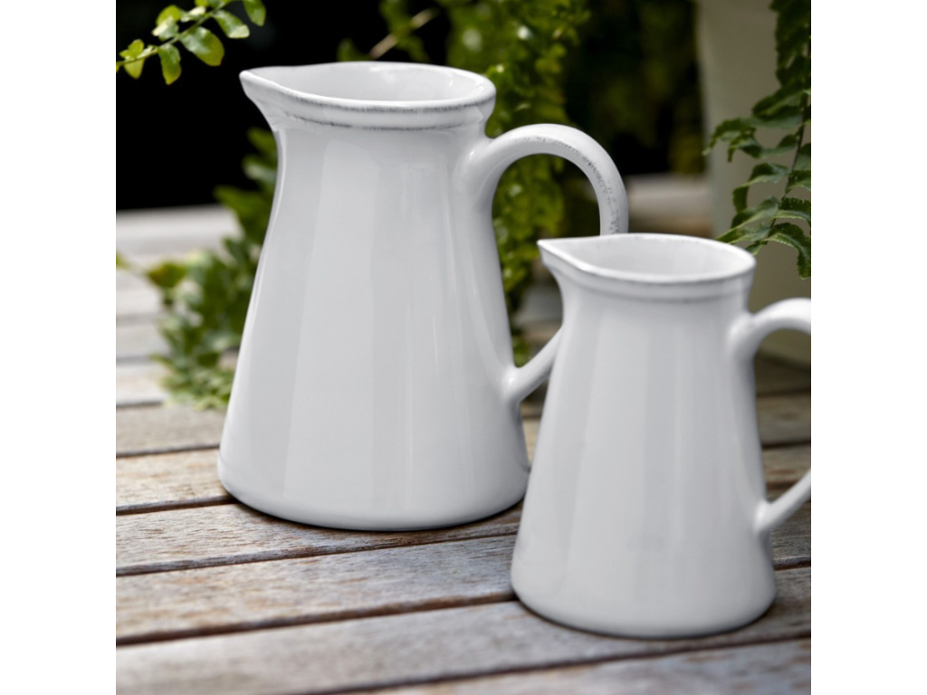 Bílá kameninová konvička na mléko o objemu 150ml je ideální pro větší posezení u čaje či kávy. Její design je jednoduchý a čistý, proto ji lze mnohostranně využít například jako ozdobnou vázu na konferenčním stolku.