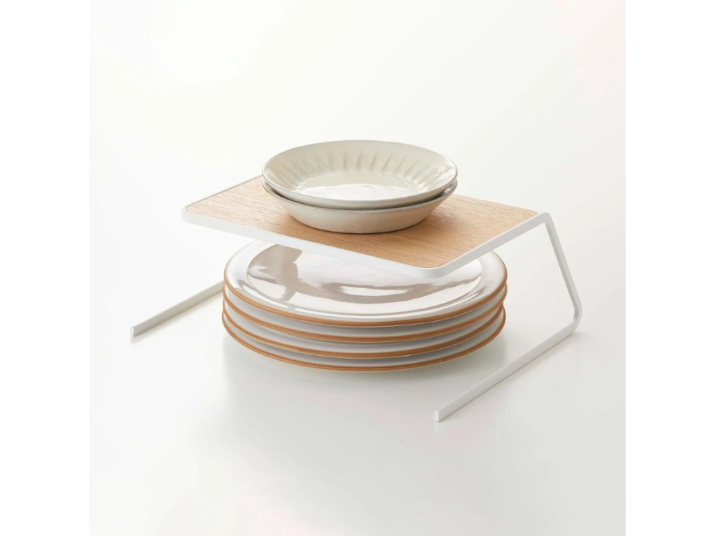Polička na talíře Tosca od značky Yamazaki bude praktickým a stylovým doplňkem vaší kuchyně. Díky svému minimalistickému designu a kombinaci bíle lakovaného kovu s přírodním dřevem snadno zapadne do jakéhokoli kuchyňského interiéru. Tosca je navržena tak, aby pojala talíře o průměru od 15 do 26 cm. Ačkoli je polička primárně určena pro talíře, její univerzální design umožňuje využití i pro jiné kuchyňské náčiní, jako jsou poklice, krájecí prkénka nebo menší pánve.
