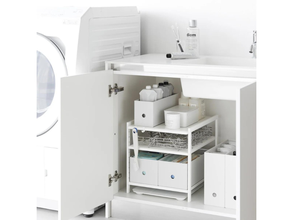 Přídavná police Tower od značky Yamazaki je skvělým řešením pro každou kuchyň, která potřebuje více úložného prostoru a lepší organizaci. Police je vyrobena z bíle lakovaného kovu, což zajišťuje její pevnost, stabilitu a dlouhou životnost. Tower nabízí chytré uspořádání s jednou pevnou a dvěma výškově nastavitelnými policemi, které vám umožní přizpůsobit úložný prostor podle vašich potřeb. Součástí police jsou také háčky, na které můžete zavěsit drobné kuchyňské doplňky. Police se snadno vejde pod většinu kuchyňských dřezů a poskytuje dostatek místa pro ukládání čisticích prostředků, houbiček, hadříků a dalších potřeb. Také je vhodná k použití jak ve skříňce, tak i na pracovní ploše.