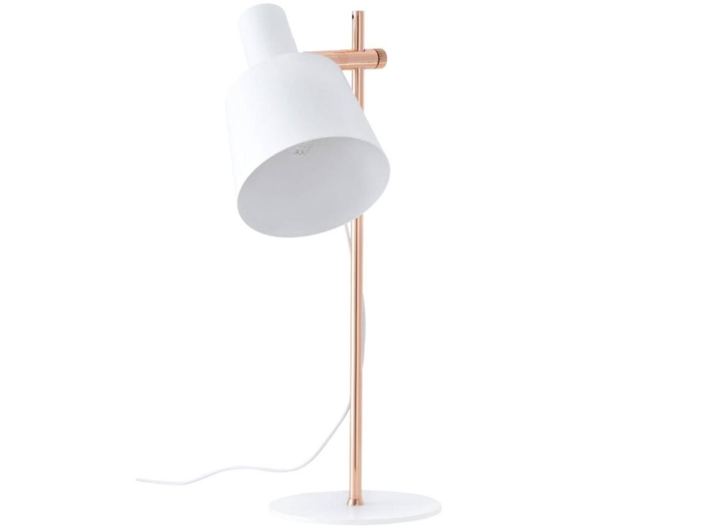 Originální stolní lampa Somcasa Estel má velmi nadčasový design. Bílé kovové stínidlo je možné nasměrovat dle potřeby interiéru. Měděná noha je vybavena dvěma klouby. Pomocí kloubu u stínidla je možné lampu natočit a díky závitu můžeme lampu posouvat nahoru a dolů.