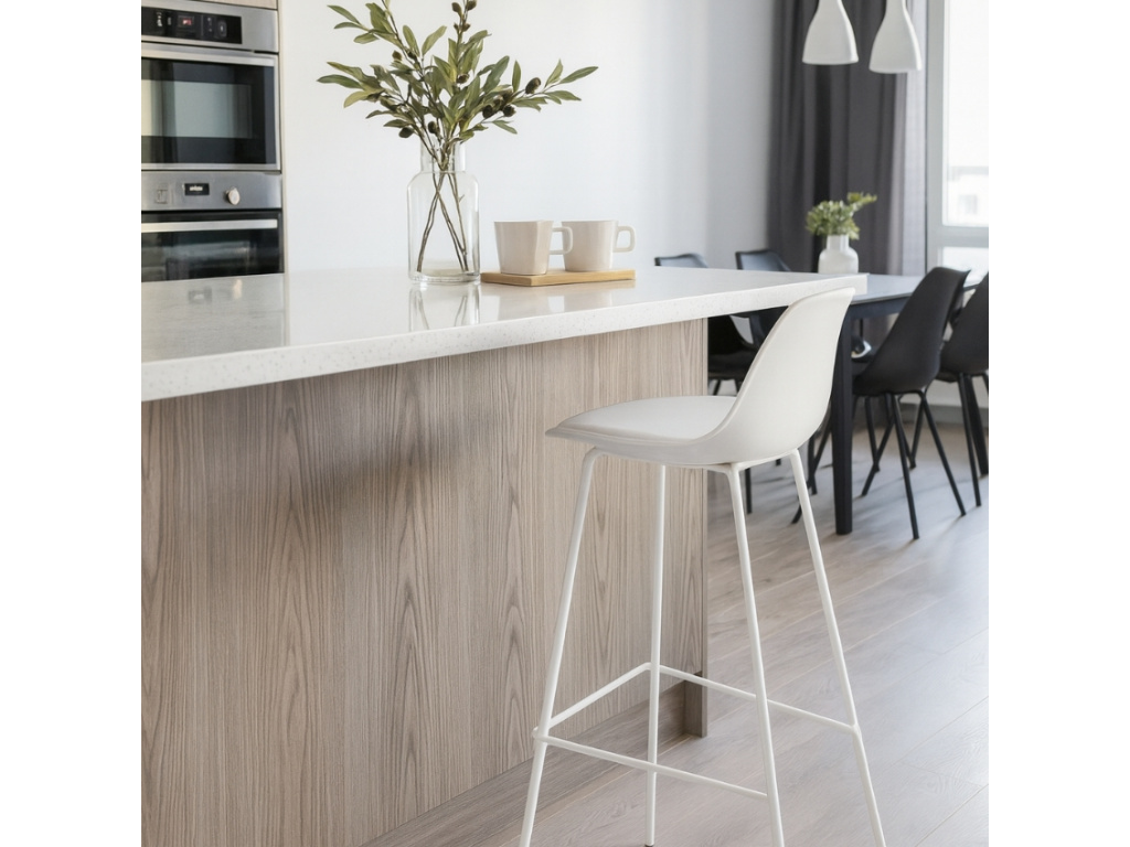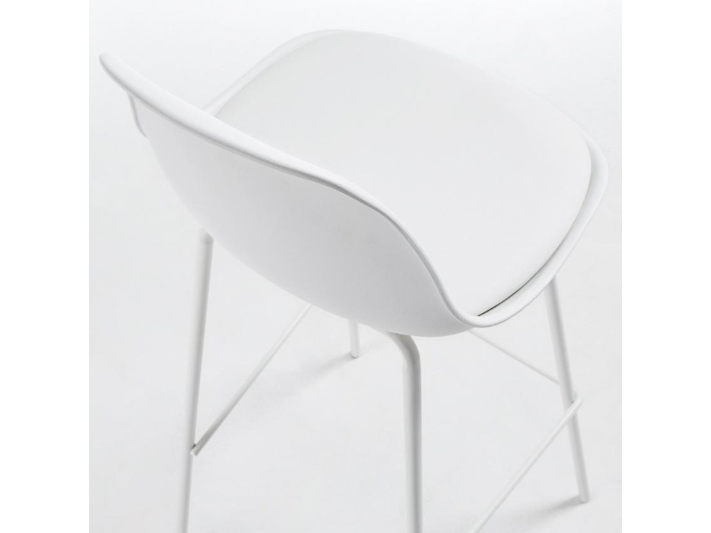 Minimalistické pojetí barové židle Kave Home Brighter zaujme již na první pohled. Příjemný koženkový sedák v plastové skořepině vytváří společně s kovovou podnoží stylový kousek nábytku. Bílá barva dodá celému produktu na jemnosti a čistotě. Židle se díky své odolnosti skvěle hodí do komerčních prostor, radost ale samozrřejmě udělá i v domácím prostředí – u kuchyňského ostrůvku nebo barového pultu.