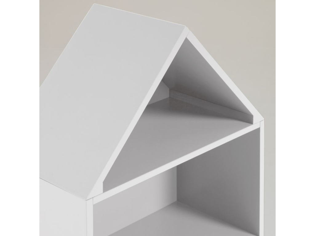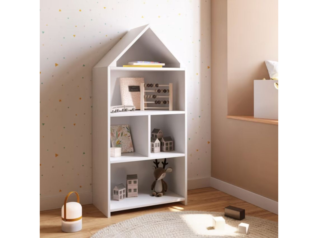 Knihovna Celeste značky Kave Home je vyrobená z lakovaných MDF desek. Má tvar domku a najdete v ní celkem pět polic třech různých rozměrů. K dostání je ve třech různých barvách. Skvěle se hodí především do dětského pokoje, kde poslouží nejen jako knihovna. Děti si z ní mohou také udělat domeček pro panenky a jednotlivé poličky využít jako pokojíčky.