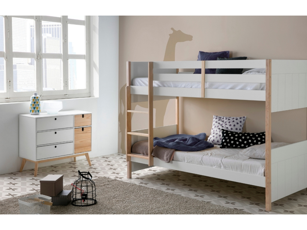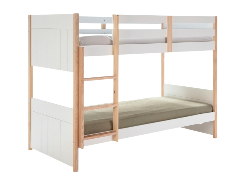 Dětská patrová postel Kiara od značky Marckeric se skvěle hodí i do menších dětských nebo studentských pokojů. Bíle lakovaná MDF a masivní borovicové dřevo vytváří nádhernou kombinaci, díky které získává postel příjemný a vzdušný vzhled a vaše děti se v ní budou v cítit jako v bavlnce. Vyvýšené okraje bočnic postele přispívají bezpečnosti a stabilitě. Do dřevěného rámu lze usadit dvě matrace o velikosti 90 x 190 cm. Zkombinujte tento kousek také s ostatními produkty z řady Kiara a získejte dokonalou souhru nábytku.