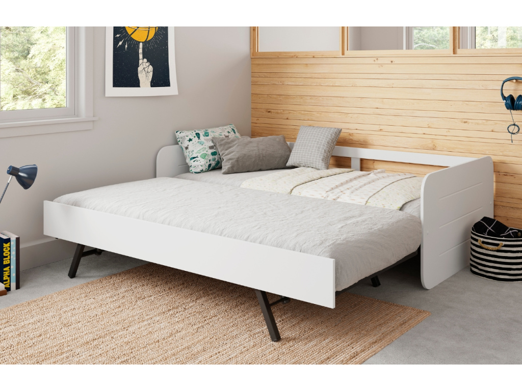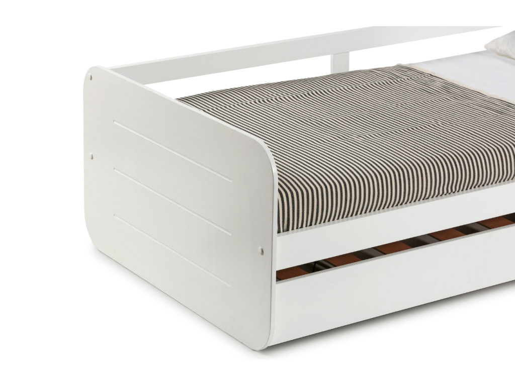 Moderní postel Redona od značky Marckeric vás zaujme svým elegantním vzhledem. Své místo si najde v pokojích dětských, studentských nebo například v pokojích pro hosty. Součástí je totiž úschovná přistýlka, která je zasazena do rámu postele a díky tomu ušetříte spoustu místa. Celá konstrukce je vyrobena z materiálu MDF s rošty z borovicového dřeva a přistýlka má navíc lakovanou kovovou podnož.