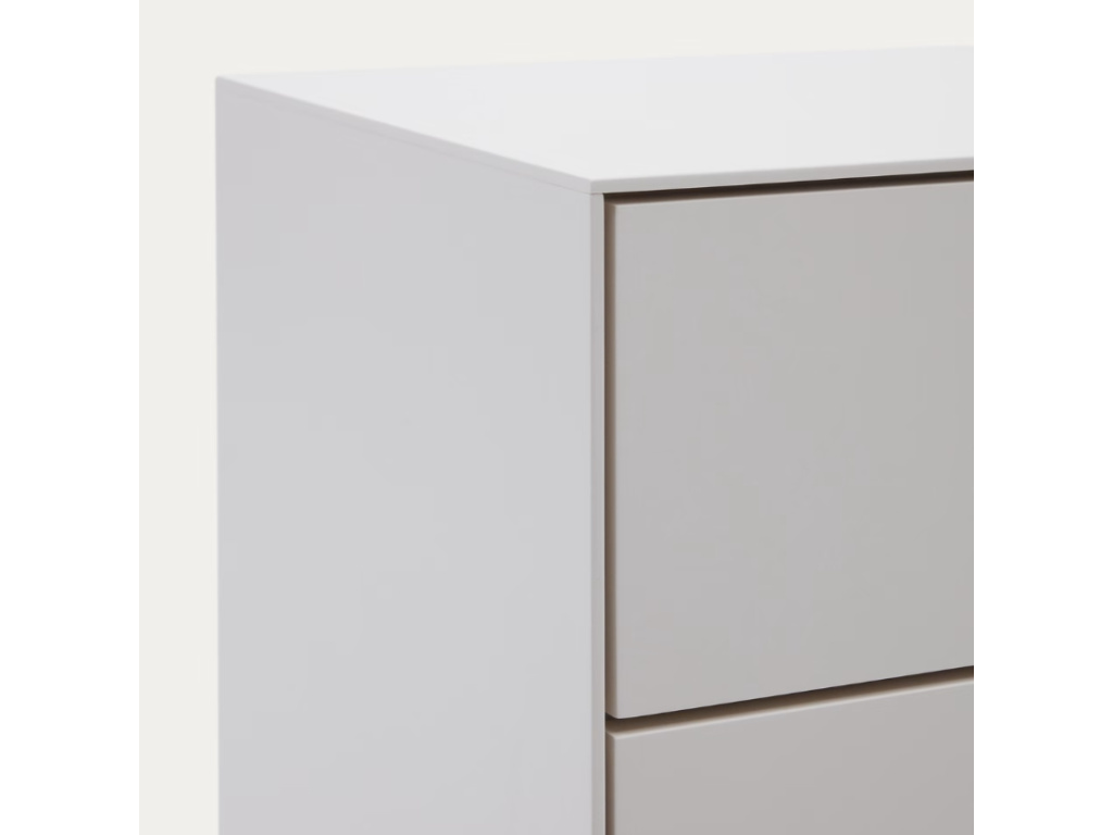 Komoda Vedrana pochází ze stejnojmenné série nábytku vytvořeného týmem Kave Home. Tyto úložné prostory jsou velice praktické a skvěle se hodí do industriálních i minimalistických interiérů. Spojení bíle lakovaného MDF a světlé kovové podnože je nejen nadčasové, ale hlavně velice elegantní. Tato komoda s kovovou podnoží nabízí úložný prostor v podobě tří prostorných zásuvek. Skvěle se tak hodí například do ložnice nebo dětského pokoje, kde ji využijete k uložení oblečení. Sjednoťte úložné prostory ve vaší domácnosti a vpusťte do ní sérii Vedrana! Vybírat můžete z komod a TV stolků různých velikostí, všechny jsou dostupné nejen v bíle lakovaném provedení, ale také v provedení dub a ořech.