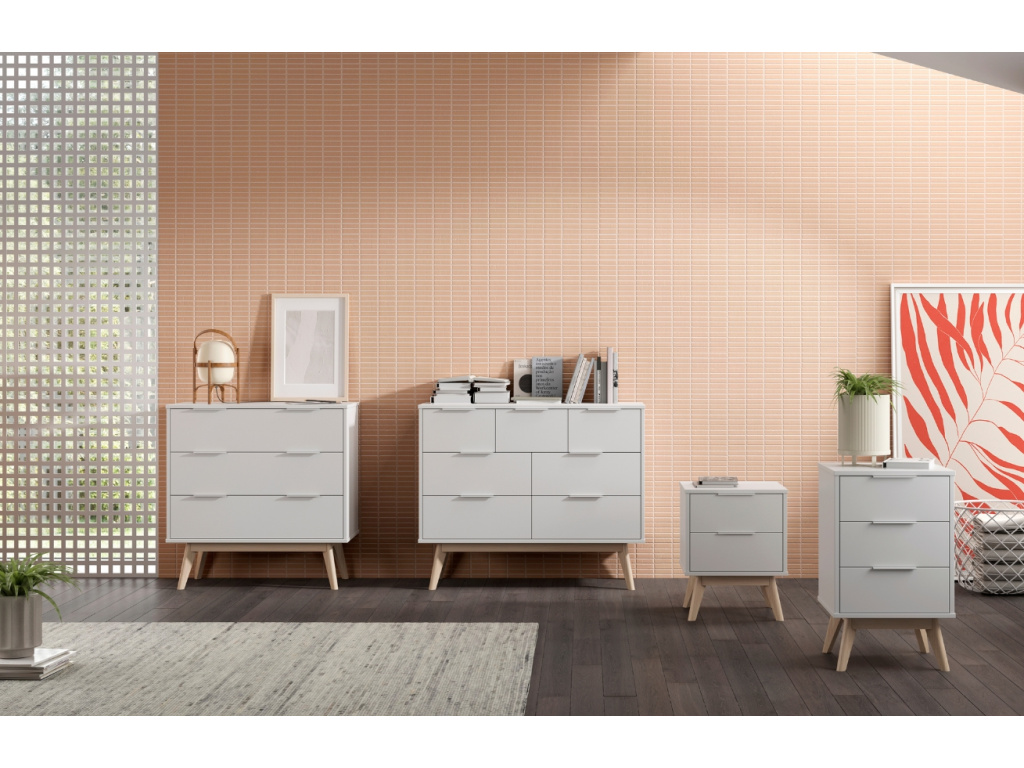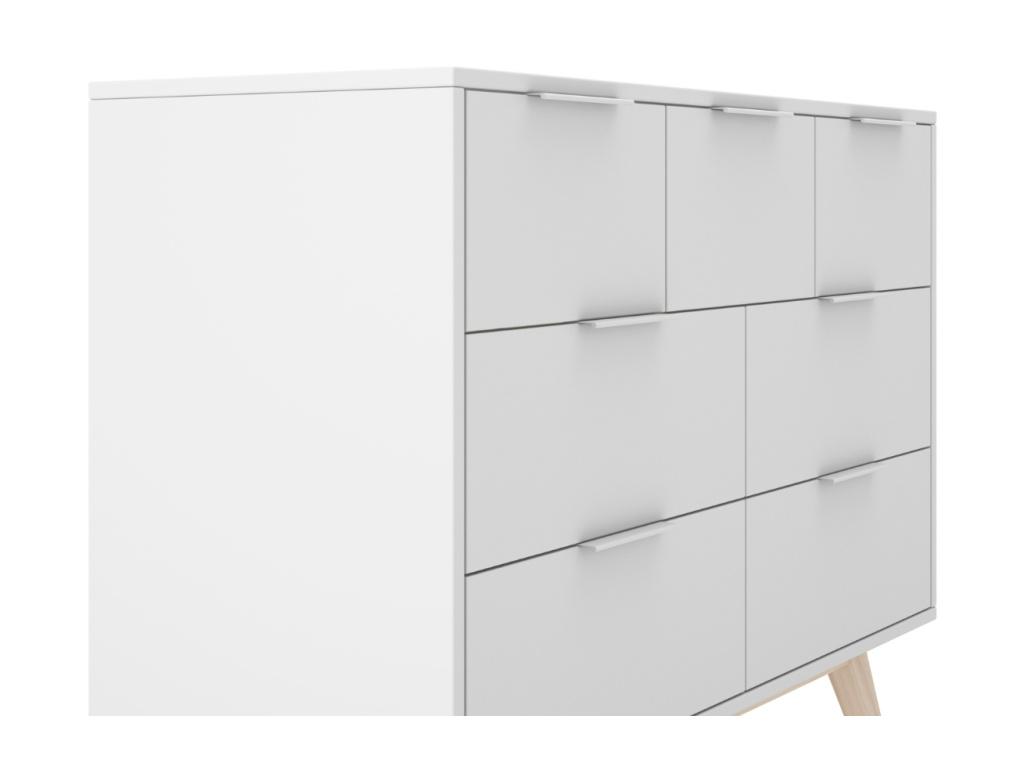 Komoda Marckeric Campus se stane jedinečným a stylovým doplňkem vašeho domova. Obdélníkový lakovaný korpus z MDF nabízí prostorný úložný prostor díky několika zásuvkám. Atraktivní kontrast dodává komodě podnož z borovicového dřeva a hodí se tak nejen do moderních, ale i klasických interiérů.