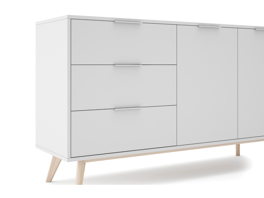 Komoda Marckeric Campus se stane jedinečným a stylovým doplňkem vašeho domova. Obdélníkový lakovaný korpus z MDF nabízí prostorný úložný prostor díky zásuvkám a policím. Atraktivní kontrast dodává komodě podnož z borovicového dřeva a hodí se tak nejen do moderních, ale i klasických interiérů.