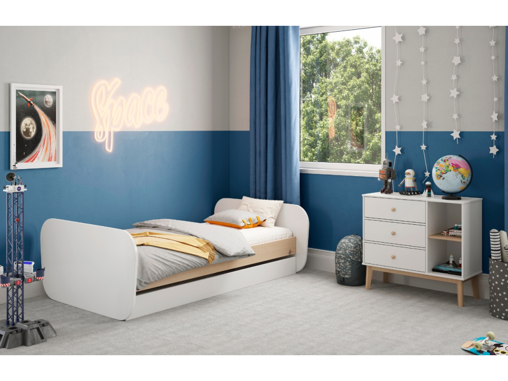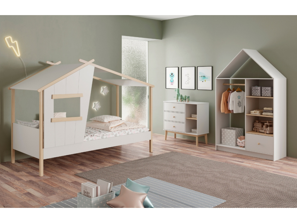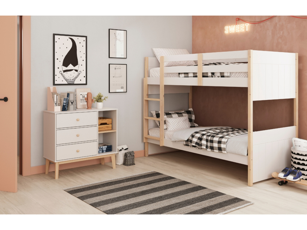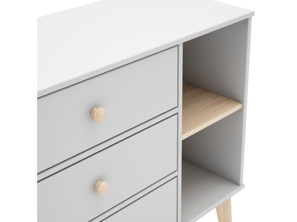 Komoda Marckeric Esteban vyniká svým minimalistickým designem. Esteban v bílé barvě je vyrobená z MDF a podnož a úchytky jsou vyrobené z masivního borovicového dřeva, které celé komodě dodává styl. Komoda se skvěle hodí například do dětského pokoje, kam přinese příjemnou atmosféru. Hodit se ale bude také do ostatních místností vašeho domova, které jsou laděné do skandinávského stylu. Komoda disponuje prostornými zásuvkami a policemi.