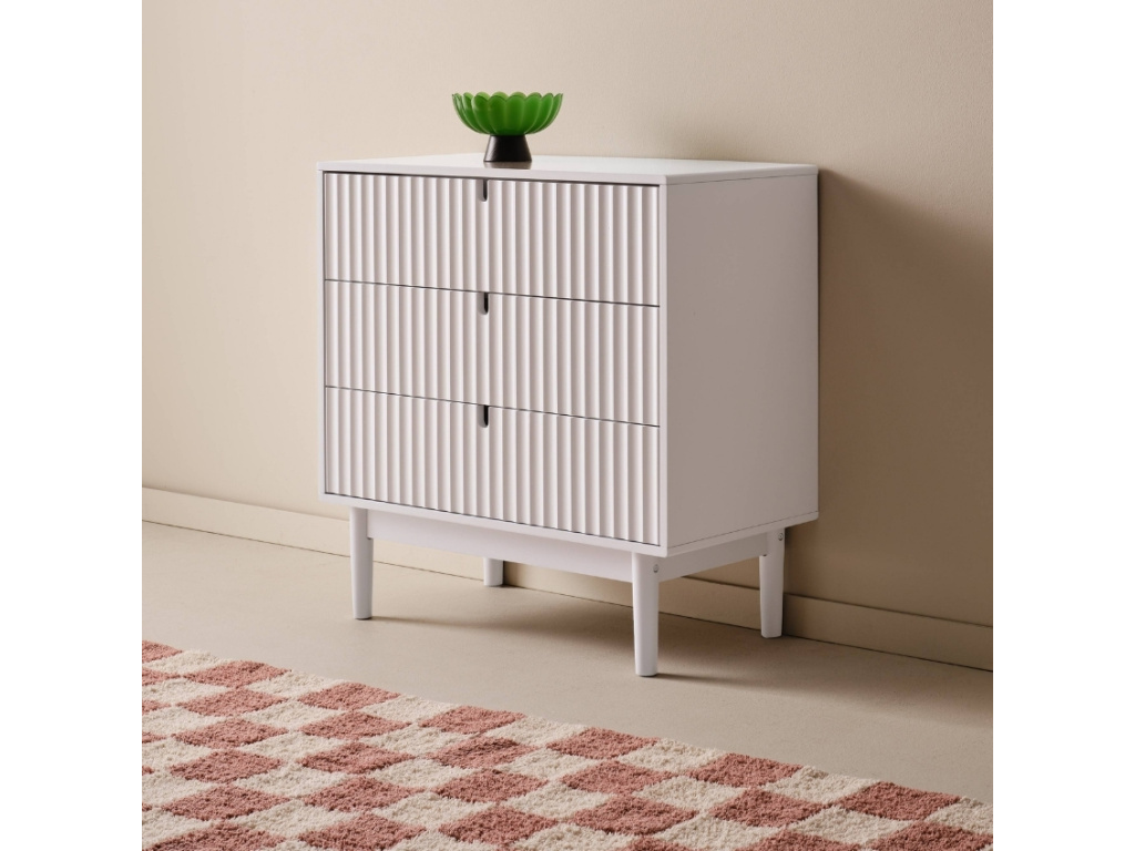 Přineste do svého domova styl a praktičnost s komodou TOULUSE od značky Jotex, která se stane nejen užitečným kouskem nábytku, ale také ozdobou vašeho prostoru. Charakteristickým prvkem komody je vlnitý čelní design, který jí dodává nádech elegance a retro stylu. Komoda je vyrobena z borovicového dřeva a MDF, které je navíc ošetřeno ekologickou povrchovou úpravou na vodní bázi, která poskytuje lesklý a hladký povrch, snadno se čistí a je bezpečná pro zdraví vašich dětí. Zároveň se komoda pyšní prestižním certifikátem FSC, což znamená, že při její výrobě bylo použito dřevo pocházející z odpovědně spravovaných lesů, kde se dbá na udržitelnost a ochranu přírody. Komoda TOULUSE nabízí tři prostorné zásuvky, které mají praktický otvor na vrchu pro snadné otevírání. Už nikdy nebudete mít problém s ukládáním oblečení, hraček nebo knih. Vše bude mít své místo, a vy se tak vyhnete nepořádku a chaosu. S TOULUSE získáte dokonalou kombinaci designu a funkčnosti, která obohatí váš domov a poskytne vám praktické řešení pro organizaci vašich věcí. Přidejte ji do svého interiéru a užijte si harmonii elegance a modernosti, kterou přináší.