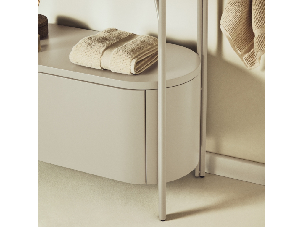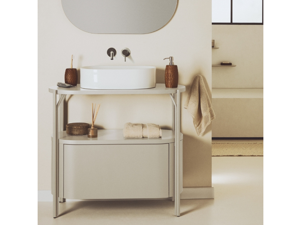 Arely představuje spojení funkčnosti a elegantního designu, které promění každou koupelnu v harmonické místo. Tento kousek pro Kave Home navrhlo studio Nahtrang – vyniká oblými liniemi bez ostrých hran a působí díky tomu přirozeně a útulně. Skříňka kombinuje lakovanou ocel s voděodolným lakovaným MDF, díky čemuž je nejen odolná vůči vlhkosti, ale také stabilní a vizuálně lehká. Praktická zásuvka s push-to-open a soft-close systémem zajišťuje plynulé otevírání a dostatek prostoru pro uspořádání čistících prostředků a hygienických potřeb a nastavitelná podnož se přizpůsobí i nerovným podlahám. Skříňky Arely jsou k dispozici ve dvou velikostech a dvou barevných provedeních, takže snadno vyberete tu správnou pro vaši koupelnu. Doplnit ji můžete o další prvky ze série – policemi a držáky na ručníky i toaletní papír, které se společně postarají o jednotný a moderní interiér.