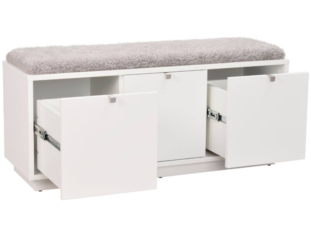 Elegantní a velice praktická, taková je lavice CONFETTI značky ROWICO. Tři prostorné zásuvky přinesou potřebný úložný prostor a čalouněný sedák umožní pohodlné posezení, které využijete například při obouvání. Lavici můžete umístit nejen do předsíně nebo chodby - využití najde také v zimní zahradě nebo na zaskleném balkoně. Můžete ji mít s černým nebo světle šedým sedákem, dostupná je také v menší verzi o šířce 70 cm.