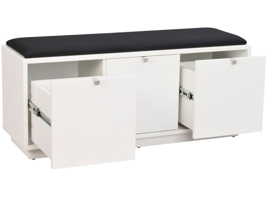 Elegantní a velice praktická, taková je lavice CONFETTI značky ROWICO. Tři prostorné zásuvky přinesou potřebný úložný prostor a čalouněný sedák umožní pohodlné posezení, které využijete například při obouvání. Lavici můžete umístit nejen do předsíně nebo chodby - využití najde také v zimní zahradě nebo na zaskleném balkoně. Můžete ji mít s černým nebo světle šedým sedákem, dostupná je také v menší verzi o šířce 70 cm.