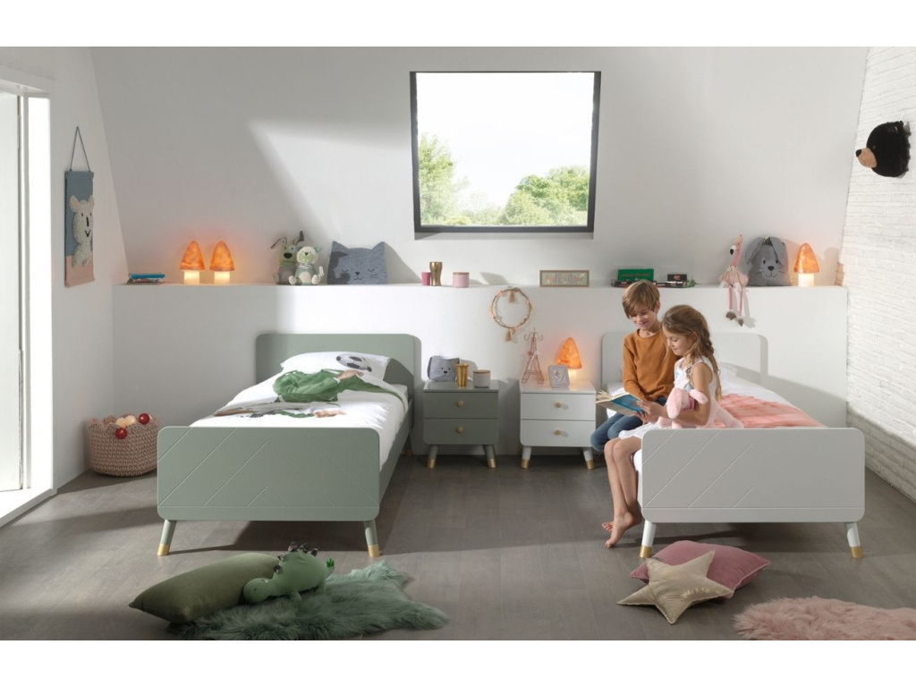 Jednolůžková postel Vipack Billy zaujme svým moderním designem a zdobením v podobě originálního grafického vzoru. Rám z lakovaného MDF, borovicová podnož a zlatě lakovaný detail na podnoži vytvářejí efektivní spojení a dodají pokoji patřičný styl a unikátnost. Pro svou typickou stylizaci se hodí nejen do moderních skandinávských interiérů, do kterých vnese jemnost a eleganci. Vykouzlete společně s dalšími produkty z řady Billy jedinečnou atmosféru a perfektně vyladěný pokojíček pro vaše ratolesti.