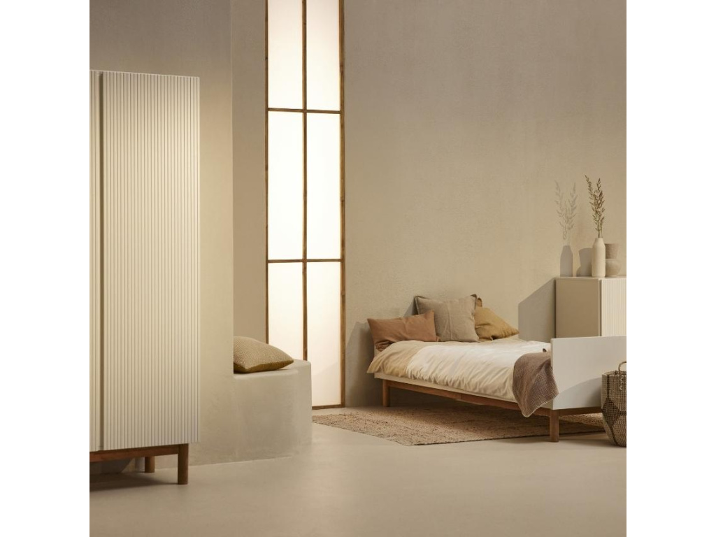 Designová elegantní skříň Quax Mood je prostorným úložným místem na všechno dětské oblečení. Krásný jednoduchý vzhled s žebrovanými dvířky a korpusem z lakované MDF tvoří jemný kontrast s bukovou podnoží. Elegantní barva a minimalistický design se bude skvěle hodit do skandinávských interiérů. Doplňte váš dětský pokoj o velký úložný prostor na dětské prádlo, plenky i botičky.