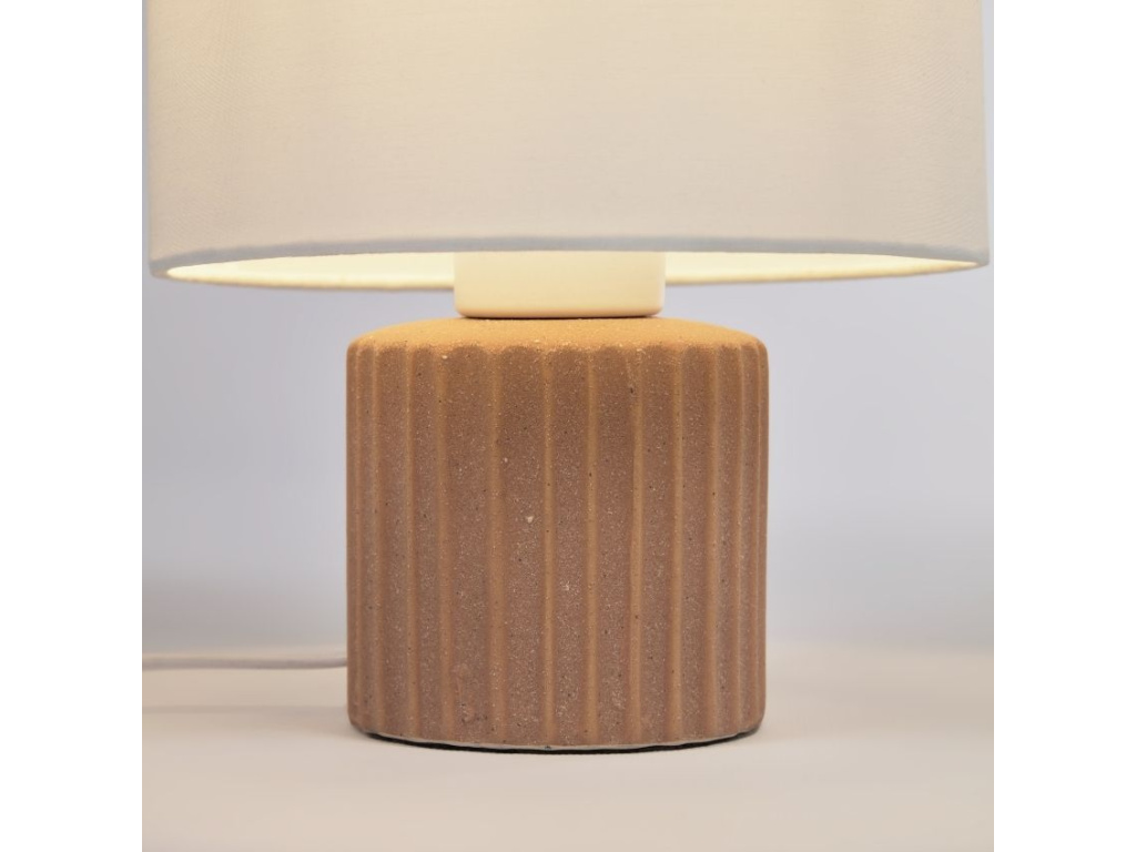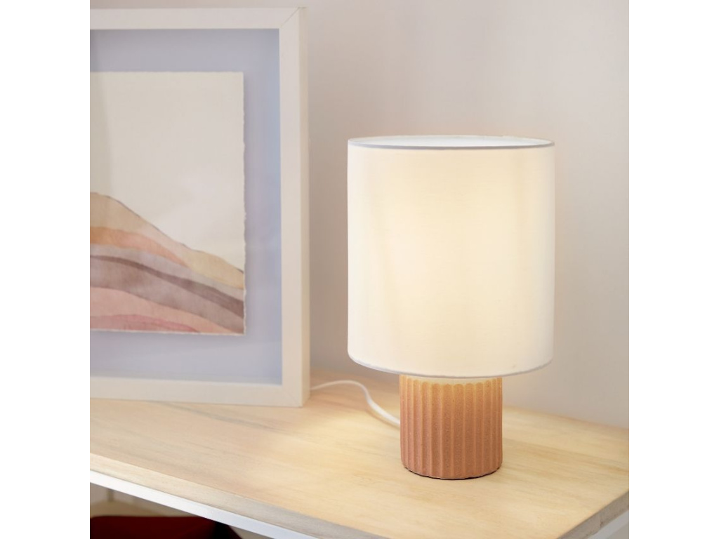 Elegantní stolní lampa Kave Home Eshe v sobě vkusně spojuje bílé látkové stínidlo a keramickou podstavu terakotově oranžové barvy. Povrch podstavy je navíc ozvláštněn vroubkovanou texturou, díky které působí robustním dojmem. Design lampy je inspirován přírodou a přinese do vašeho interiéru moderní nádech.