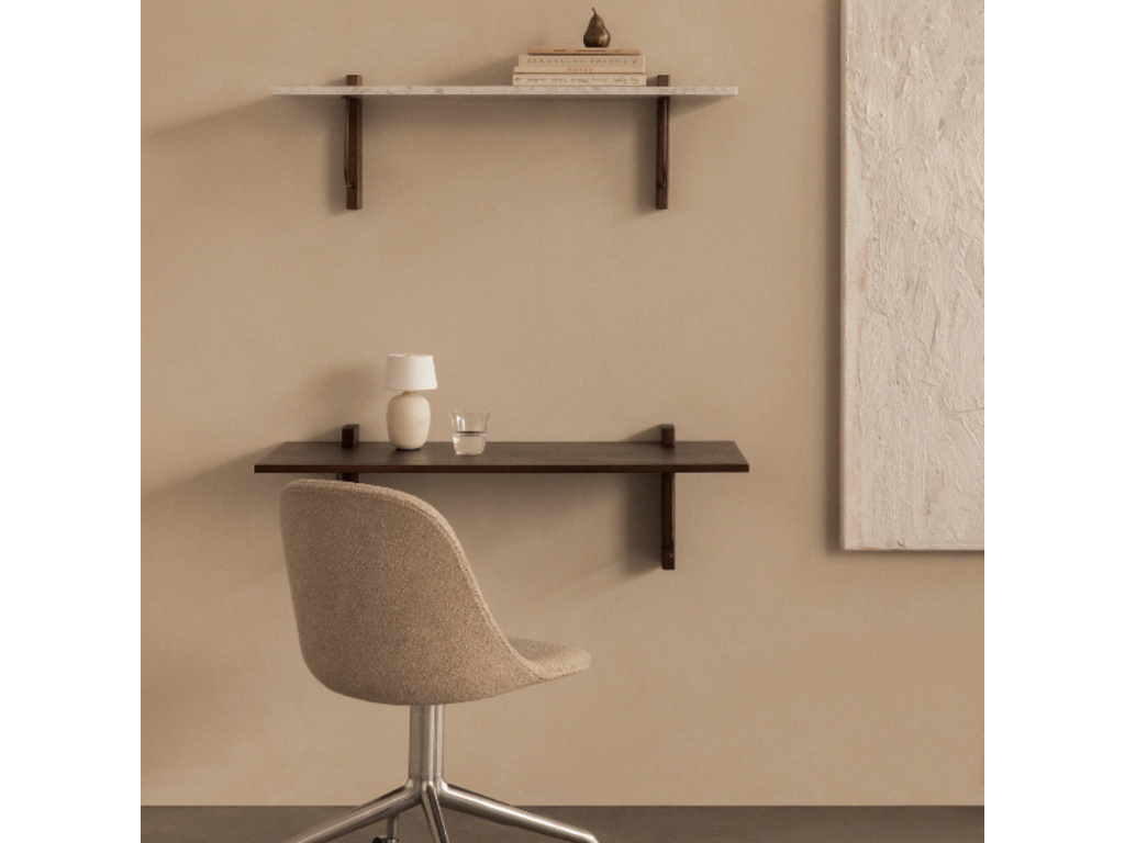 Udělejte si radost nástěnnou policí CORBEL od značky AUDO. Je navržená tak, aby představovala praktickou odkládací plochu v ložnici, v obýváku nebo kanceláři. Díky unikátní konstrukci pro montáž na zeď je ideální do malých prostorů – toto řešení skvěle šetří místo. Police je vyrobena kombinací bílého carrarského mramoru, kovu a MDF. Výborně ji sladíte s minimalistickým a industriálním interiérem. Spárujte tuto designovku se závěsným stolem ze stejnojmenné série a vytvořte tak dokonalou domácí kancelář! V nabídce máme také polici s dubovou deskou.