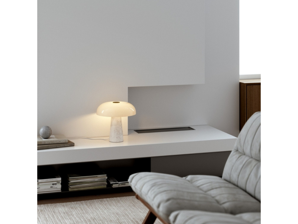 Minimalistický klenot, který okouzlí precizním výběrem luxusních materiálů – stolní lampa Glossy kombinuje zářivě bílé opálové sklo s exkluzivním mramorovou podstavou, jejíž struktura je jedinečná pro každý kus. Jemně rozptýlené světlo vytváří příjemnou atmosféru, zatímco oblý design dodává interiéru eleganci s dotekem luxusu. Skvělá volba pro moderní i klasické prostory, kde se snoubí sofistikovanost s nadčasovým vkusem. Autorkou designu je Maria Berntsen a vyhrála s ním už několik prestižních cen. Objevte celou kolekci Glossy!