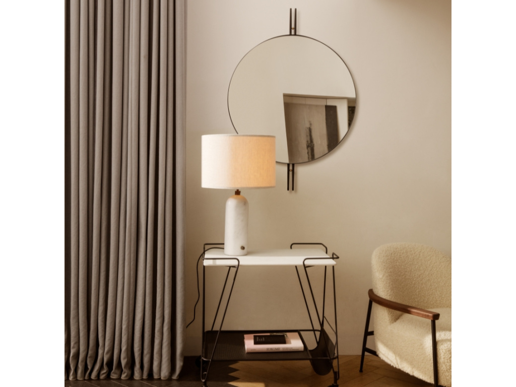 Gravity je elegantní stolní lampa, která v sobě spojuje kontrastní prvky síly a lehkosti. Tato lampa se vyznačuje robustní, válcovitou základnou z bílého mramoru a lehkým, vzdušným stínidlem. Tento design vytváří harmonický celek, který působí jako sochařský prvek v interiéru. S výškou 49 cm poskytuje lampa příjemné, tlumené osvětlení, které vytváří útulnou atmosféru v místnosti. Díky svému univerzálnímu designu se hodí do různých prostorů, od obývacích pokojů po ložnice či kanceláře. Gravity je ideální volbou pro ty, kteří hledají spojení funkčnosti, estetiky a kvalitního zpracování v jednom designovém kousku.