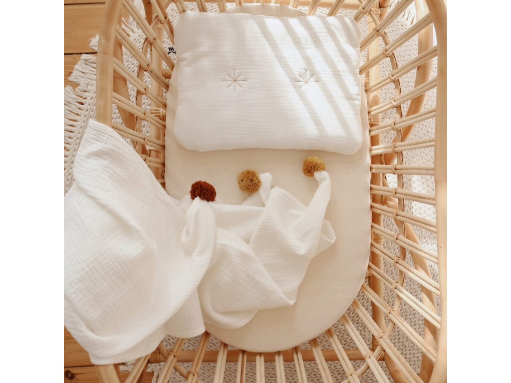 Více infoBílá mušelínová zavinovací plenka Pompon 100 x 140 cm