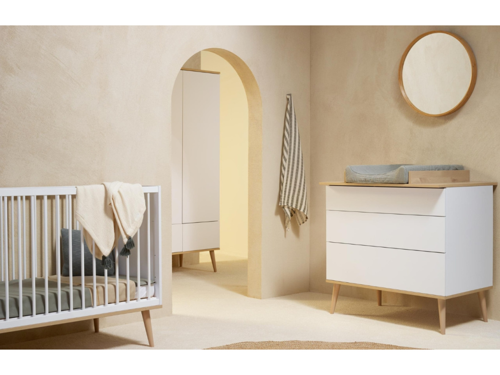 Rozšiřte komodu Flow od značky Quax s přebalovací nástavbou, která je skvělým pomocníkem v každodenní péči o miminko. Tento promyšlený doplněk snadno promění vaši komodu v přebalovací pult, čímž vytvoříte místo, kde budete mít vše potřebné po ruce – od plenek po krémy a ubrousky. Zvýšené okraje zajistí, že přebalovací podložka pevně drží na svém místě a zamezí jejímu pohybu během přebalování. Dopřejte sobě i svému dítěti komfortní zázemí, které vám usnadní každý den plný péče a lásky. Doplňte svůj interiér o další elegantní kousky z této kolekce a dosáhněte dokonalé harmonie.