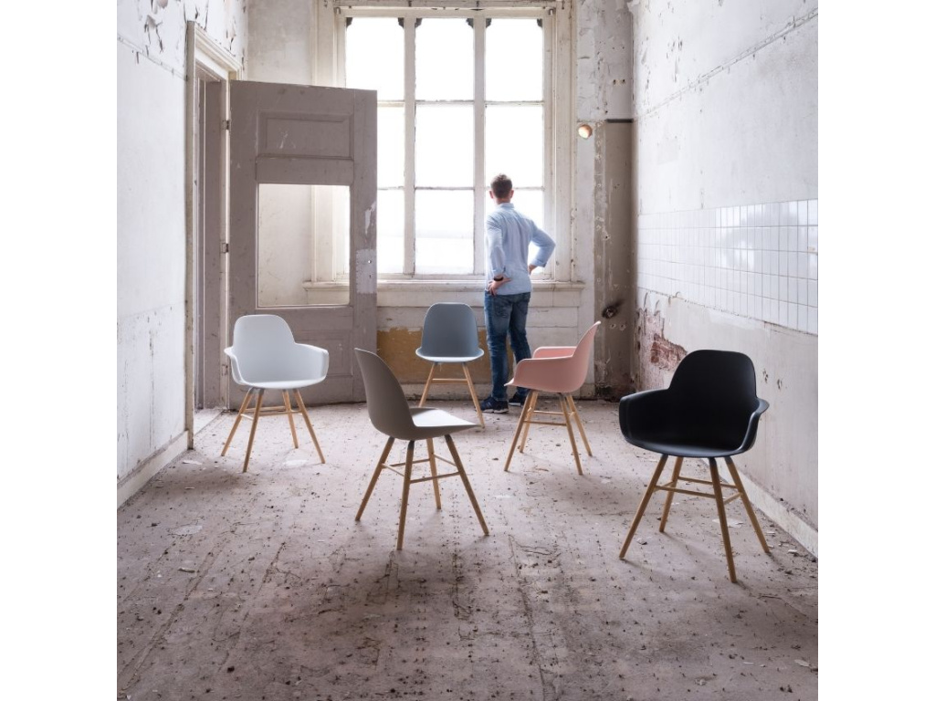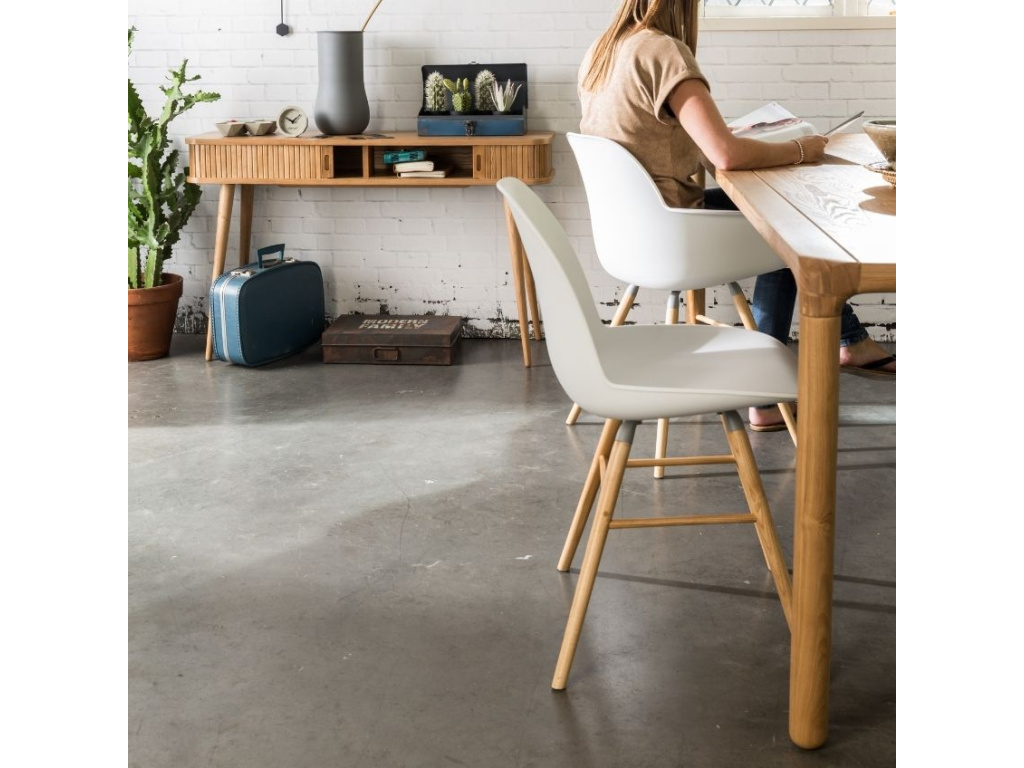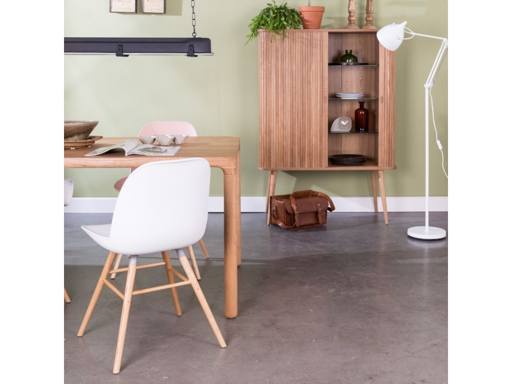 Jídelní židle ZUIVER ALBERT KUIP v bílé barvě. Sedák z propylenu je připevněn na pevné podnoži z kvalitního jasanového dřeva pomocí hliníkového rámu. Díky tomu poskytuje Albert Kuip nosnost až 140 kg.