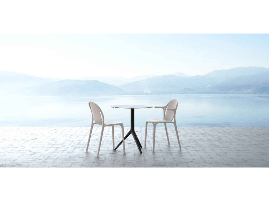 Pozn.: Při delším nepoužívání doporučujeme židle v exteriéru přikrývat, nebo je uschovat do krytých prostor. Udržujte je v dostatečné vzdálenosti od zdrojů nadměrného tepla. K čistění nikdy nepoužívejte agresivní čistící prostředky. Interiérové fotografie jsou pouze ilustrační, barva židle je bílá.
