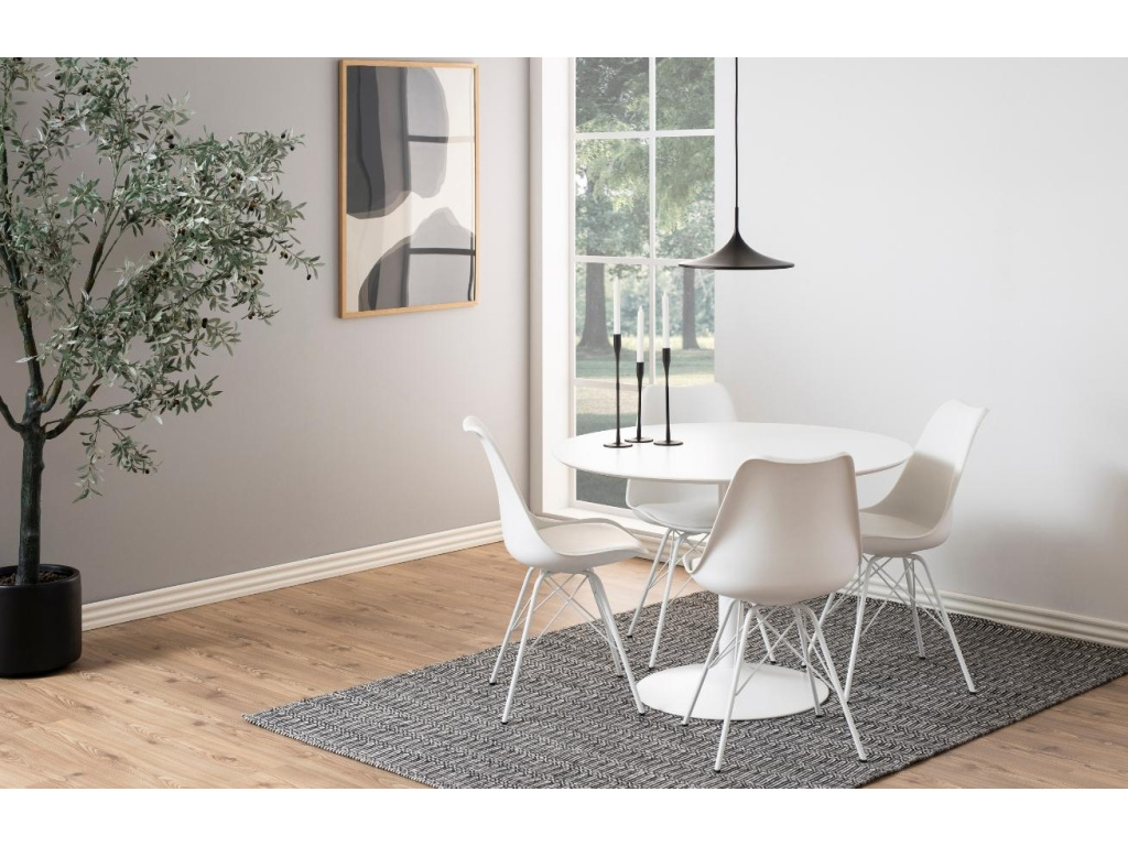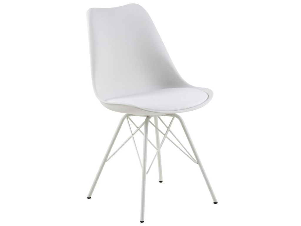 Elegantní a stylová jídelní židle Erisa bude krásným a pohodlným doplňkem vaší jídelny. Zajímavě řešená podnož je vyrobená z bíle lakovaného kovu a díky tenkým liniím působí lehce a elegantně. Pohodlný tvarovaný sedák z ekokůže a zádová opěrka z bílého plastu vytváří společně atraktivní spojení, které dodává židli komfort a styl. Židle Erisa se hodí do moderních jídelen.