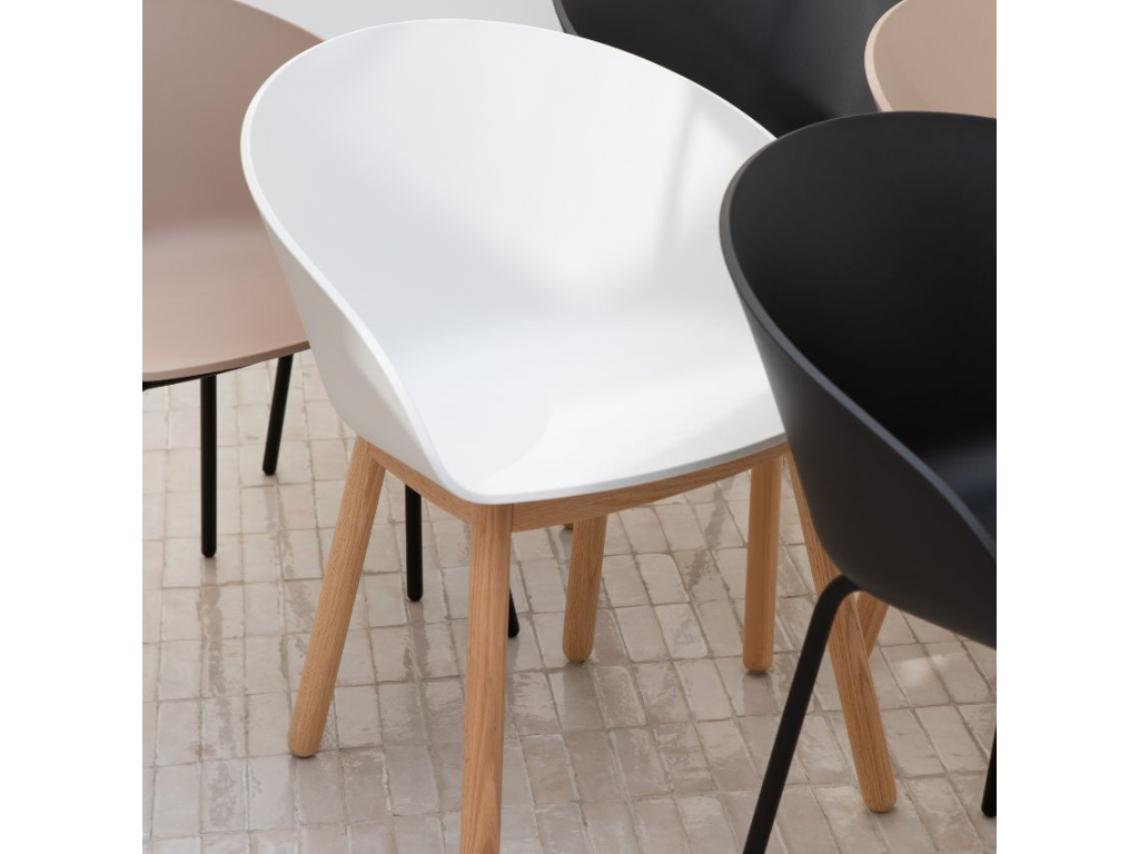 Jídelní židle VOID, navržená Lexem Pottem, představuje atraktivní designový kousek. Byla navržena tak, aby ji šlo snadno zasunout pod každý jídelní stůl – to oceníte hlavně v domácnostech, kde probíhá boj o cenné a metry čtvereční. I přes její kompaktní design vás ohromí svým pohodlím, které je umocněno vyššími područkami. Kombinace bílého plastu a přírodně zbarvené dubové podnože dodá vaší jídelně nádech elegance a luxusu, využít ji ale můžete i v pracovně nebo u psacího stolu. Dostupná je ve třech barevných variantách a můžete ji mít také s černou kovovou podnoží.