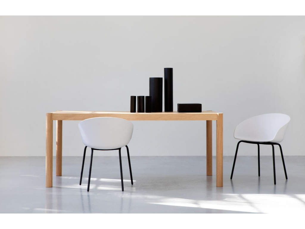 Jídelní židle VOID, navržená Lexem Pottem, představuje atraktivní designový kousek. Byla navržena tak, aby ji šlo snadno zasunout pod každý jídelní stůl – to oceníte hlavně v domácnostech, kde probíhá boj o cenné a metry čtvereční. I přes její kompaktní design vás ohromí svým pohodlím, které je umocněno vyššími područkami. Kombinace černého plastu a lakovaného kovu dodá vaší jídelně nádech elegance a minimalismu, využít ji ale můžete i v pracovně nebo u psacího stolu. Dostupná je ve třech barevných variantách a můžete ji mít také s dubovou podnoží.