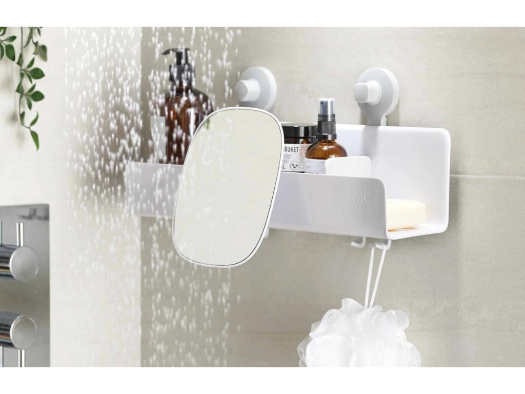 Dopřejte si svůj zasloužený relax a odpočinek ve sprše se stylovou policí EasyStore se zrcátkem! Ta je navržena tak, aby pojala vše podstatné – mýdla, sprchové gely, lahvičky šamponů a kondicionérů a další nezbytnosti do sprchy. Police disponují také praktickými háčky na houbičky a žínky či odkládacím místem pro holící strojky. V každé polici se nachází úzký otvor, kterým může odtékat nahromaděná voda. Na čelní stranu poličky lze zavěsit odnímatelné akrylátové zrcátko, které je díky použitému materiálu odolné proti nárazu. Zrcátko disponuje nastavitelným sklonem, který upravíte dle potřeby. Polička se upevňuje na hladký neporézní povrch pevnými přísavkami.