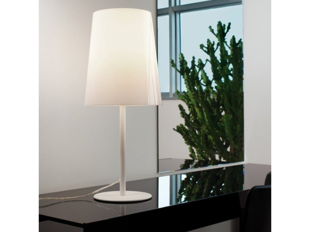 Designová stolní lampa se stínidlem z plastu a kovovou konstrukcí je nepostradatelným doplňkem do všech interiérů.