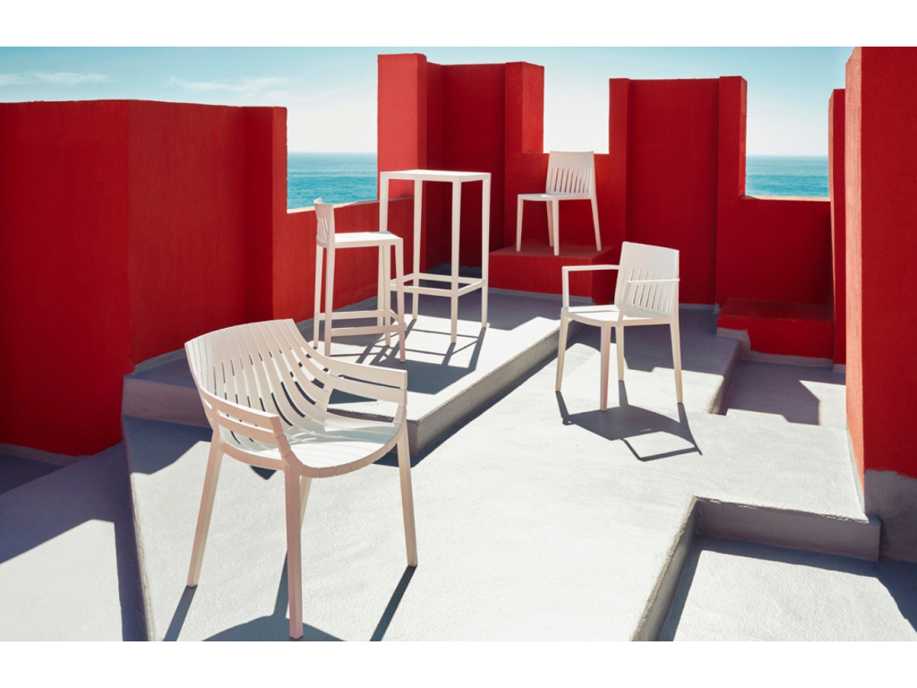 Kolekce zahradního nábytku SPRITZ je navržena designovým studiem Archirivolto Design. To založili v roce 1983 designéři Claudio Dondoli a Marco Pocci jako studio průmyslového plánování, designu a architektury. Série nábytku SPRITZ je inspirována plaňkovými dřevěnými ploty plážových domků v kombinaci s jednoduchou geometrií. Najdete zde stylové barové židle a stolky, pohodlné zahradní pohovky či křesla a dokonce i lehátka, na kterých si odpočinete v horkých letních dnech. Židle je vyrobena ze vstřikovaného polypropylenu, který bez problémů odolá vlivům počasí a zaručí snadnou údržbu. Další praktickou vlastností je stohovatelnost, a to až do počtu 8 kusů. Nábytek SPRITZ bude zkrátka perfektní volbou jak na vaši zahradu, tak na hotelovou či restaurační terasu.