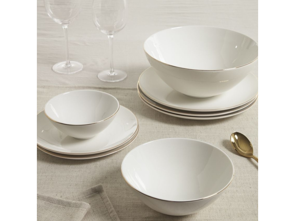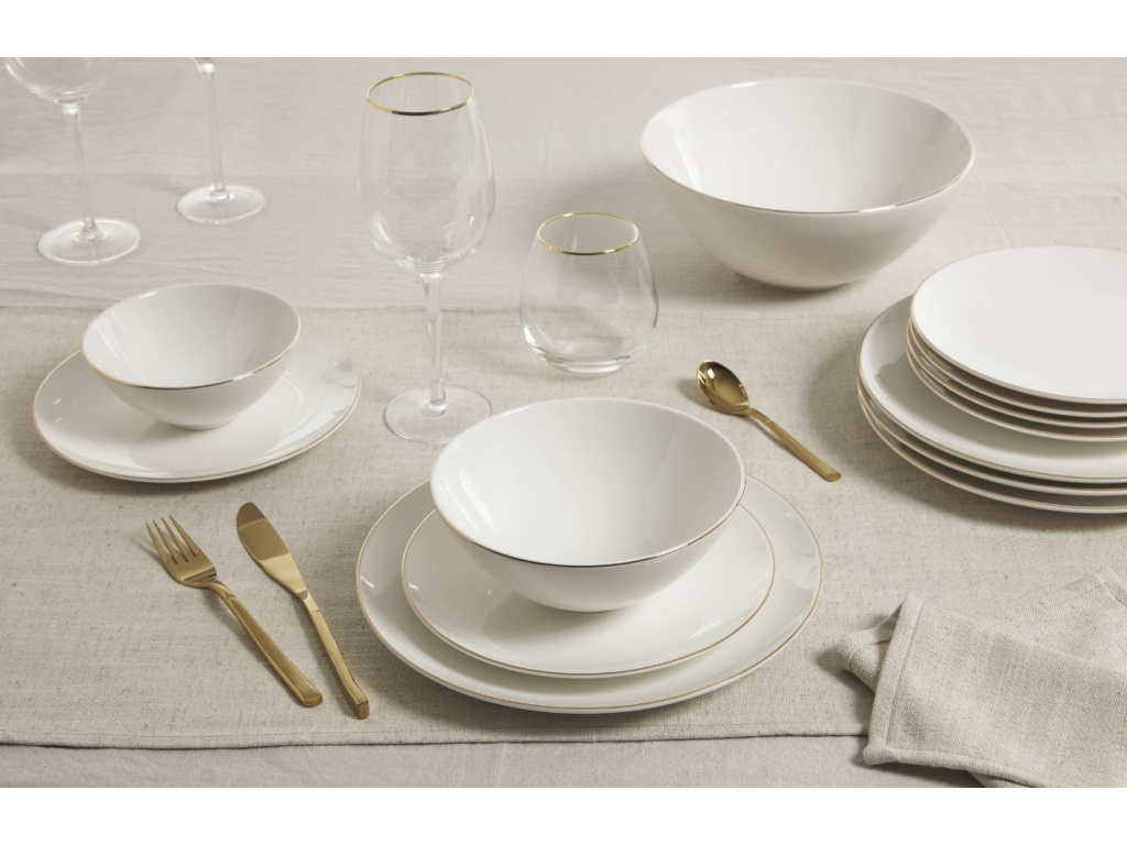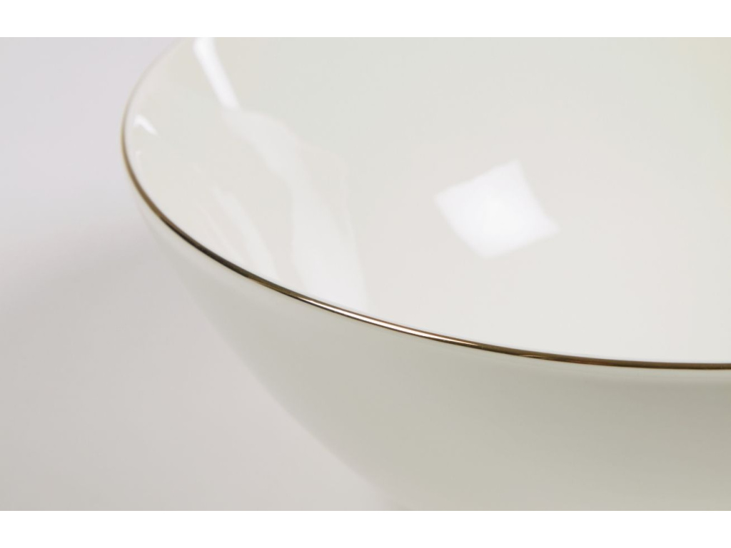 Designová porcelánová miska Kave Home Taisia je vytvořena se zlatým okrajem, který dodává elegantní a slavnostní nádech. Čeká na vás slavnostní příležitost? Tato stylová miska společně se zbytkem sady Taisia je pro vás perfektním řešením.