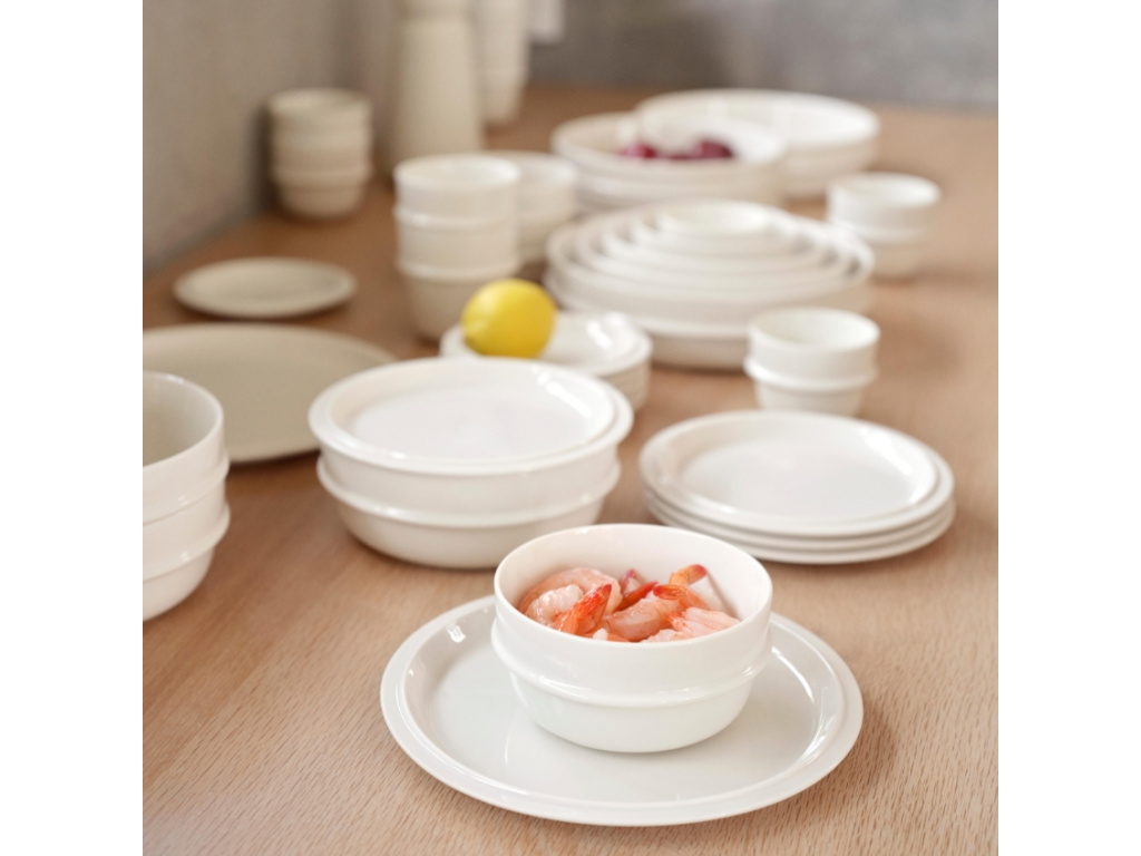 Představujeme kolekci minimalistického nádobí Eau od značky Zone Denmark, navrženou studiem Neu Studio. Tato elegantní sada v odstínu offwhite zahrnuje čtyři misky – dvě menší a dvě větší, dva dezertní talíře a dva mělké na hlavní chod. Menší miska má ideální velikost na snídaňové müsli a do té větší můžete servírovat například poke. Nádobí je vyrobeno z porcelánu nejvyšší kvality a promyšlený design umožňuje efektivní stohování, což usnadňuje prostírání a sklízení, ale také šetří místo v kuchyňských skříňkách. Skvěle se hodí mimo jiné do hotelů, kaváren a restaurací, kde usnadní servírování ve stylu středomořských bufetových aranžmá. Kolekce získala za svůj moderní přístup k nadčasové klasice prestižní ocenění Red Dot Design Award 2024.