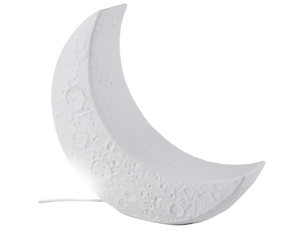 My Tiny Moon od Seletti je stolní LED lampa, která do interiéru vnese klid a jemnou atmosféru noční oblohy. Svým tvarem připomíná drobný srpek měsíce a jeho jemně strukturovaný porcelánový povrch věrně evokuje měsíční krajinu. Porcelánové tělo působí lehce a elegantně, zatímco měkké LED světlo vytváří příjemnou, neoslňující záři. Autorem lampy je Marcantonio, který je známý schopností proměňovat přírodní motivy v designové objekty s emocí. I tady pracuje s jednoduchým tvarem a silnou myšlenkou, díky které lampa funguje nejen jako světlo, ale i jako dekorace. Skvěle vynikne na nočním stolku, polici nebo odkládacím stolku. Je ideální volbou pro ty, kteří hledají jemné osvětlení s atmosférou a chtějí do interiéru přidat klidný, poetický detail.