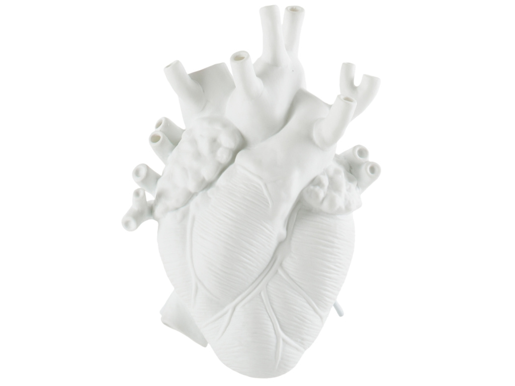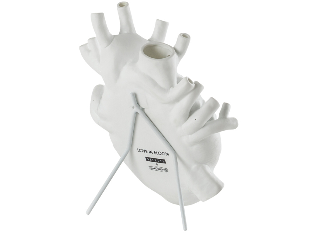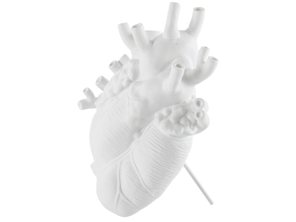 Chcete do interiéru prvek, který opravdu zaujme? Love in Bloom od Seletti posouvá klasickou vázu do role výrazného designového objektu. Porcelánové srdce v realistickém anatomickém ztvárnění okamžitě přitáhne pozornost a vzbudí emoci. Působí odvážně, ale zároveň vyváženě a esteticky čistě. Promyšlený tvar umožňuje aranžovat květiny jednotlivě, takže i několik málo stonků vytvoří působivou a harmonickou kompozici. Bez velkých kytic, bez zbytečné okázalosti, s maximálním vizuálním efektem. Každé aranžmá je originální a snadno ho přizpůsobíte náladě i prostoru. Autorem návrhu je Marcantonio, jehož tvorba je typická ironií, nadhledem a citem pro detail. Love in Bloom ukazuje jeho schopnost proměnit běžný předmět v design s charakterem a emocí, aniž by působil samoúčelně.