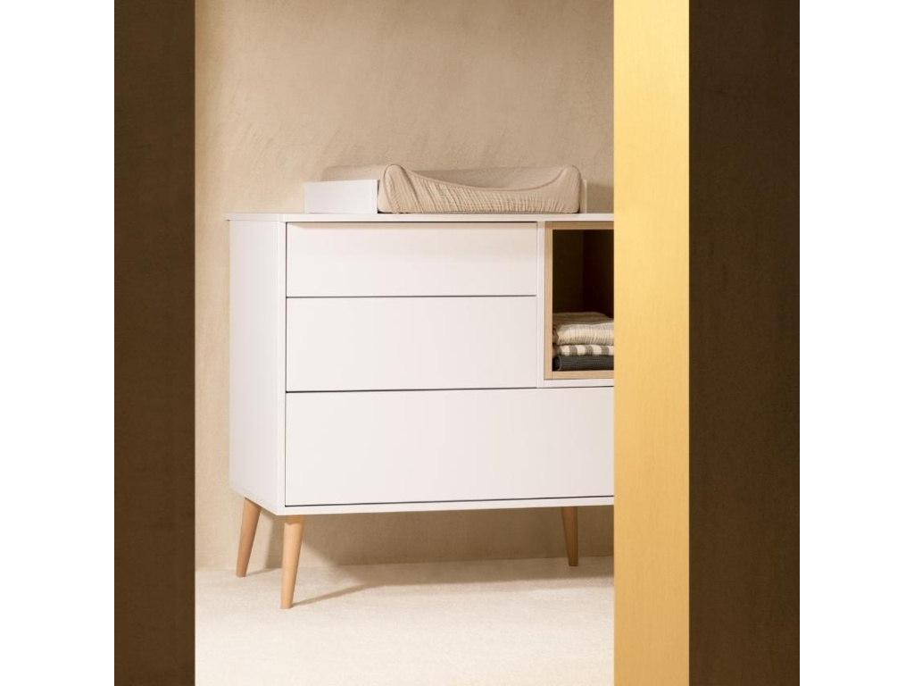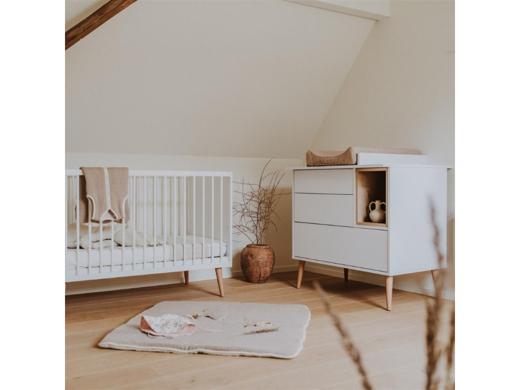 Moderní komoda Quax Cocoon je skvělou volbou do každého dětského pokoje. Moderní přírodní design a velké úložné prostory je ideální kombinace pro každou maminku, která chce mít vše důležité na jednom místě. Plenky, vlhčené ubrousky i oblečení se skvěle schová do tří prostorných zásuvek a poličky. Komodu lze využít samostatně nebo při dokoupení nástavby se z ní rázem stane přebalovací pult. Doporučujeme kombinaci více prvků z řady Cocoon, abyste vytvořili dokonalý kontrast a souhru v interiéru. Komoda Cocoon se skvěle hodí do minimalistických a skandinávských interiérů.