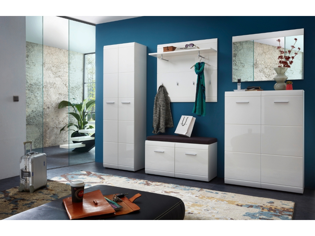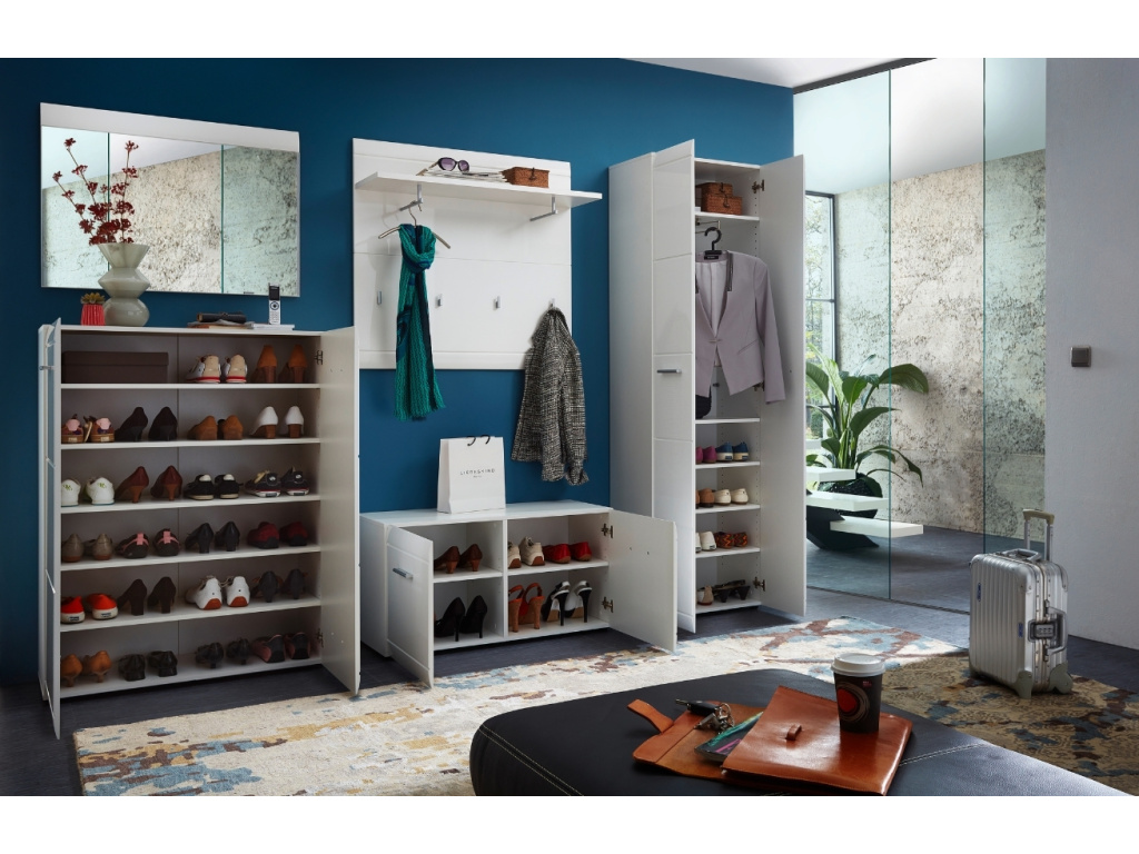 Šatní skříň Adana Vám zprostředkuje moderní předsíň s důrazem na čisté linie a neutrální barevný dekor. Atraktivním prvkem jsou kovové úchytky pro snadnou manipulaci. Skříň nabízí 5 polic a vysouvací šatní tyč. Adana dodá nadčasový styl a praktické úložné místo do každé místnosti.