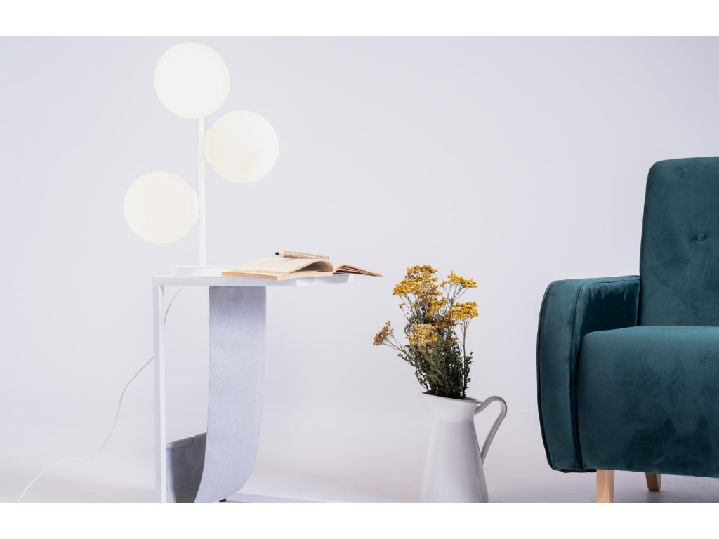 Designová stolní lampa Bubbly zaujme na první pohled svým vzhledem. 3 stínidla z mléčného skla ve tvaru koule vytváří společně s lakovanou kovovou podnoží jedinečný kontrast, který do vaše interiéru vnese nádech elegance. Lampa Bubbly rozzáří každý kout vašeho interiéru. Je libo nástěnné světlo, stojací či stolní lampu? Stačí si vybrat. Světla z řady Bubbly jsou dostupná v několika provedeních.